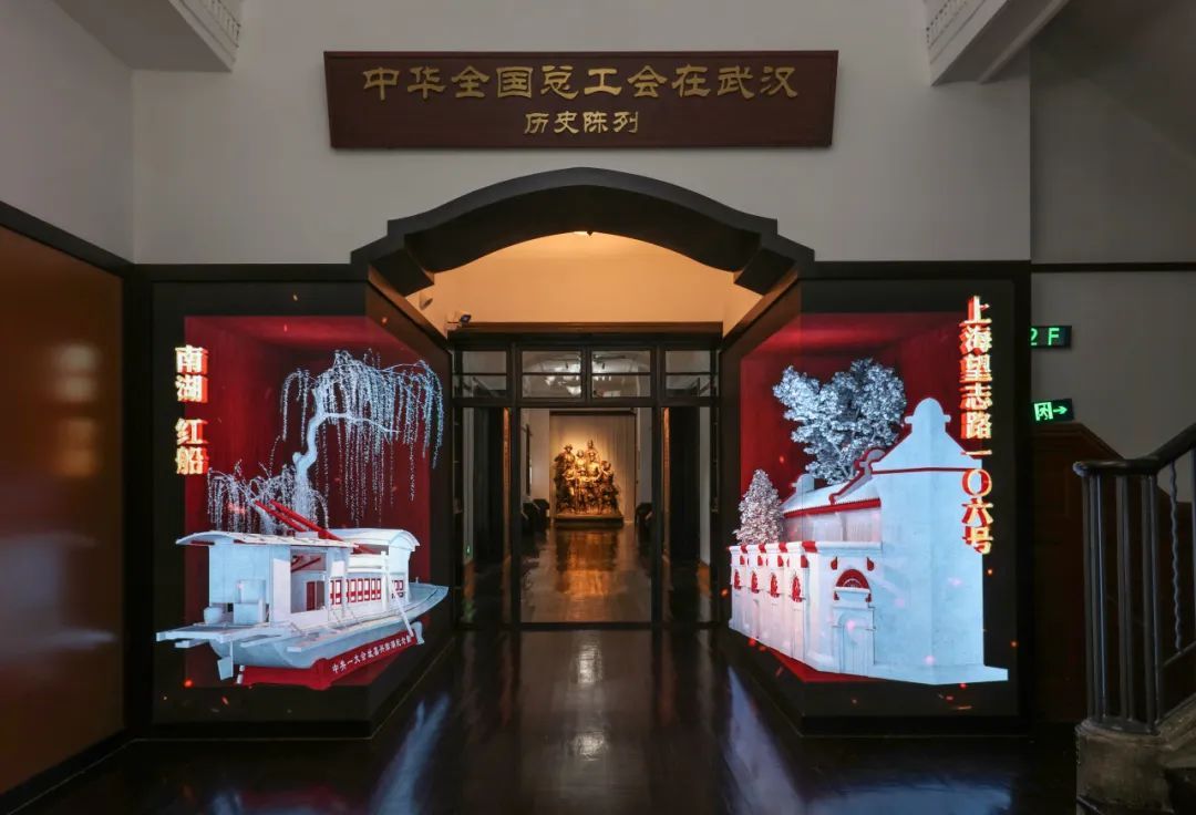2022年11月17日,歷經(jīng)三年多修繕,漢口中華全國總工會舊址紀(jì)念館再度對公眾開放。圖為“中華全國總工會在武漢”歷史陳列展廳的序廳,用虛擬與現(xiàn)實(shí)交錯的裸眼3D光影秀,拉開了中華百年工運(yùn)史的大幕。紀(jì)念館以微縮景觀、沙畫、觸摸屏、浮雕、版畫、油畫等手法,再現(xiàn)大革命時期波瀾壯闊的工人運(yùn)動;對24處空間進(jìn)行復(fù)原陳列,大大提升了觀眾的沉浸式體驗(yàn)感。