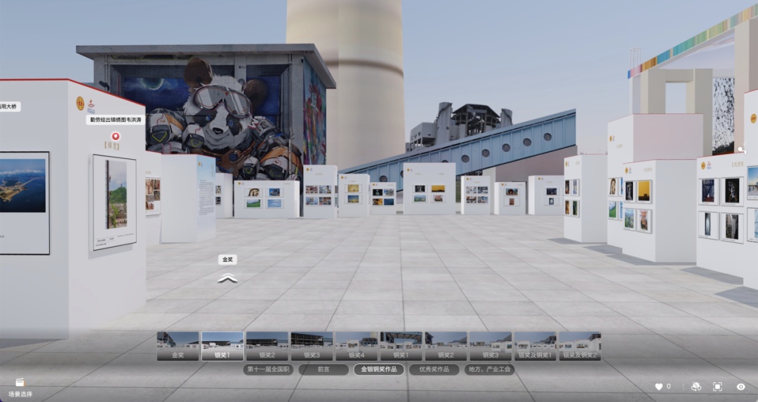 攝影展線上VR展廳分為金銀銅作品展區(qū)、優(yōu)秀獎(jiǎng)作品展區(qū)、地方/產(chǎn)業(yè)工會(huì)報(bào)送作品展區(qū),共計(jì)展出413幅(組)作品,所有作品均可在線上永久免費(fèi)觀看。