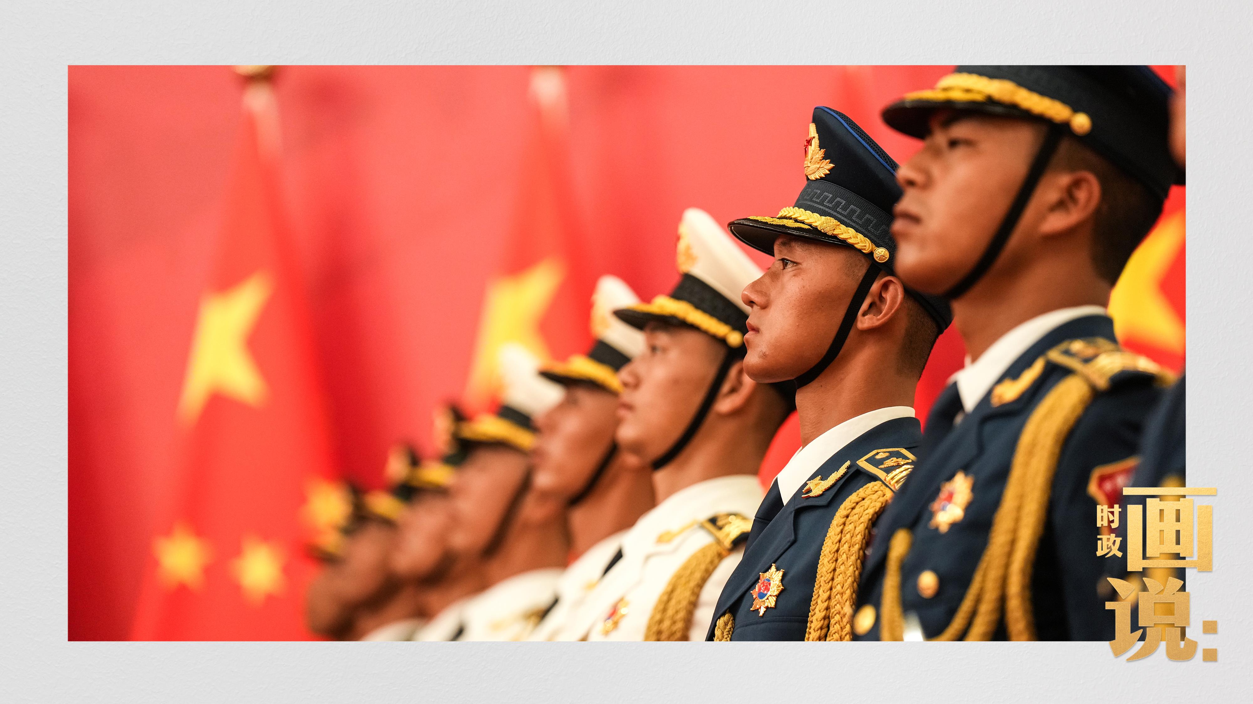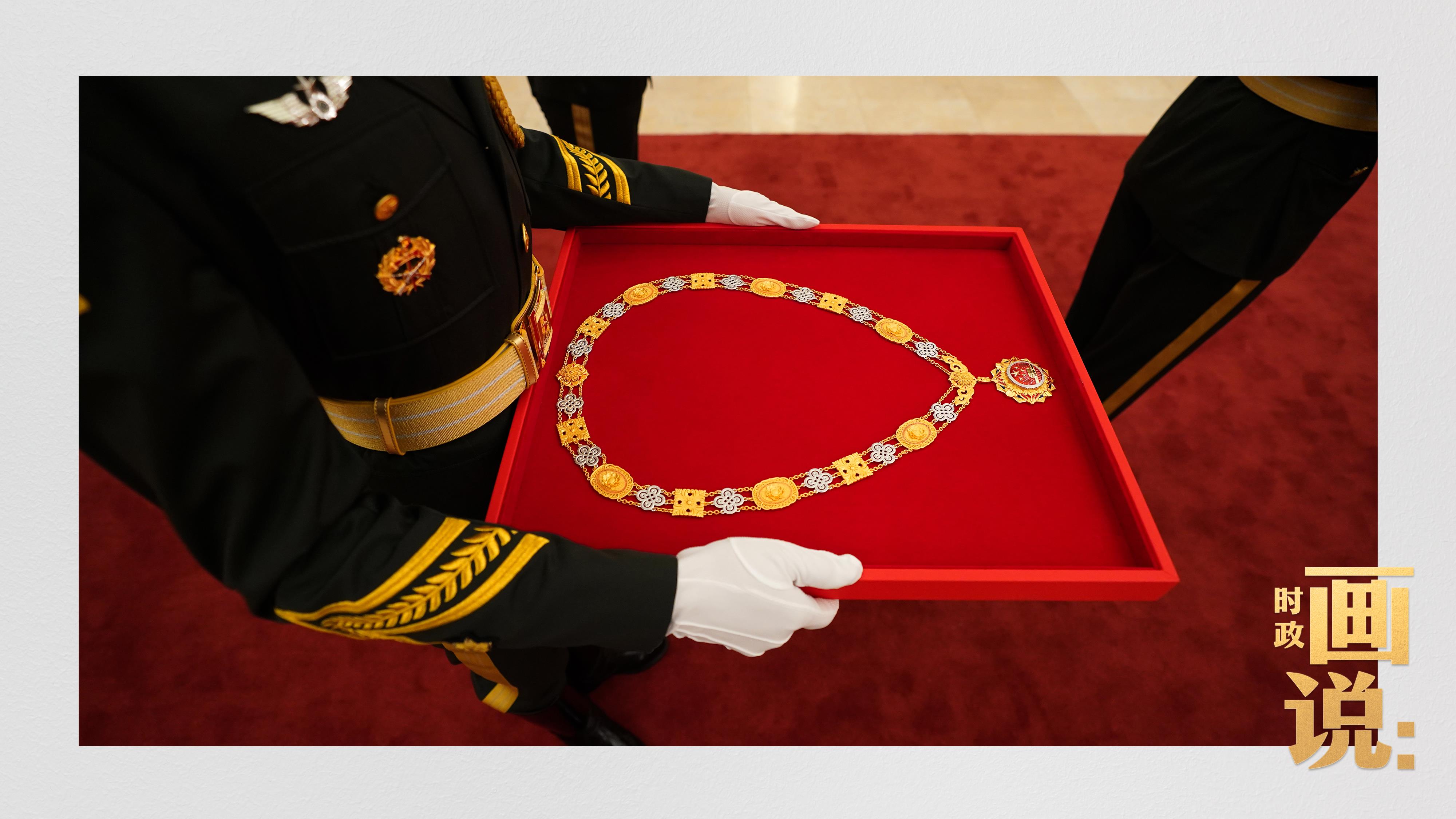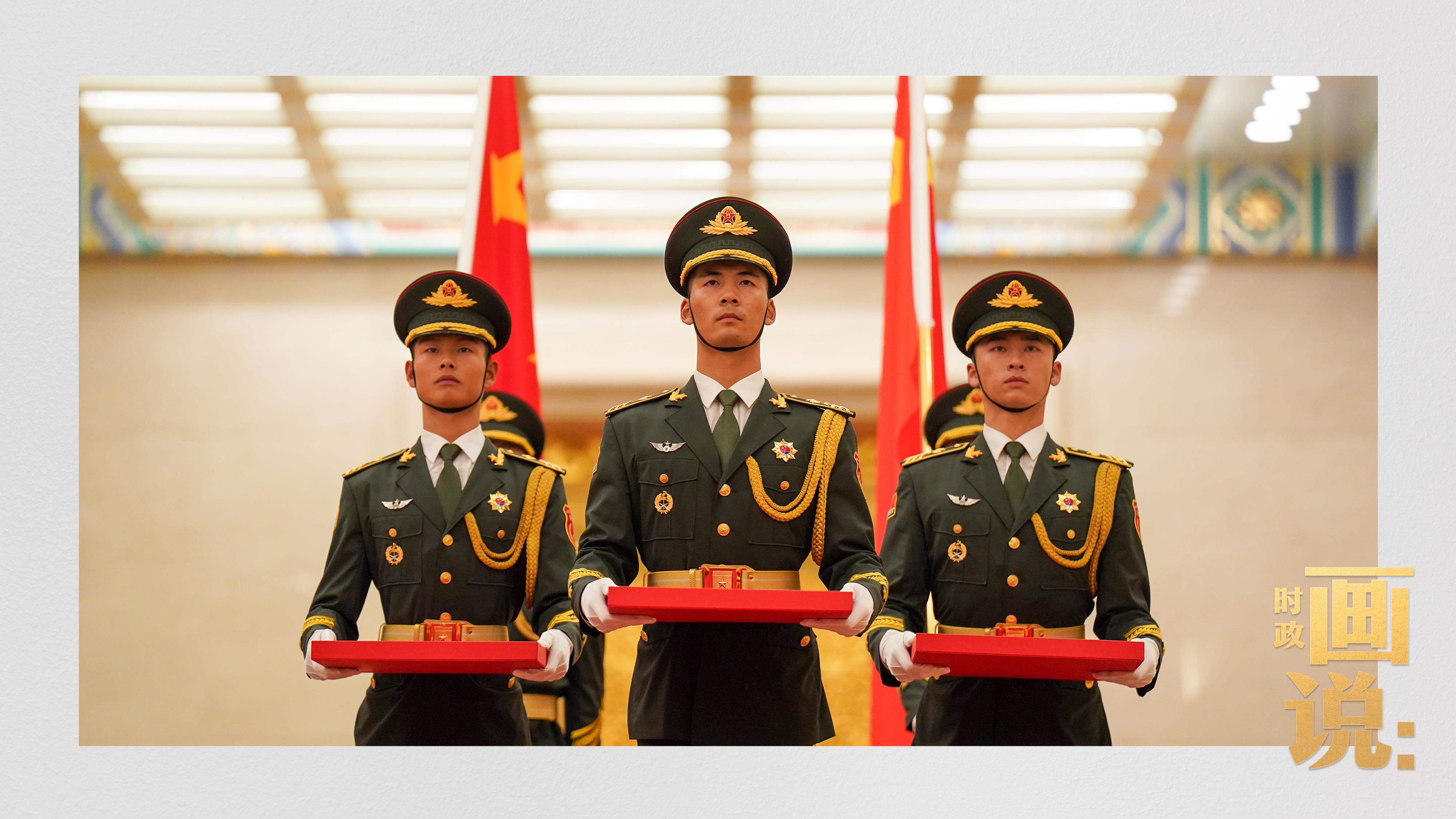 △禮兵護(hù)送國家勛章和國家榮譽(yù)稱號獎(jiǎng)?wù)氯雸觥?/span>