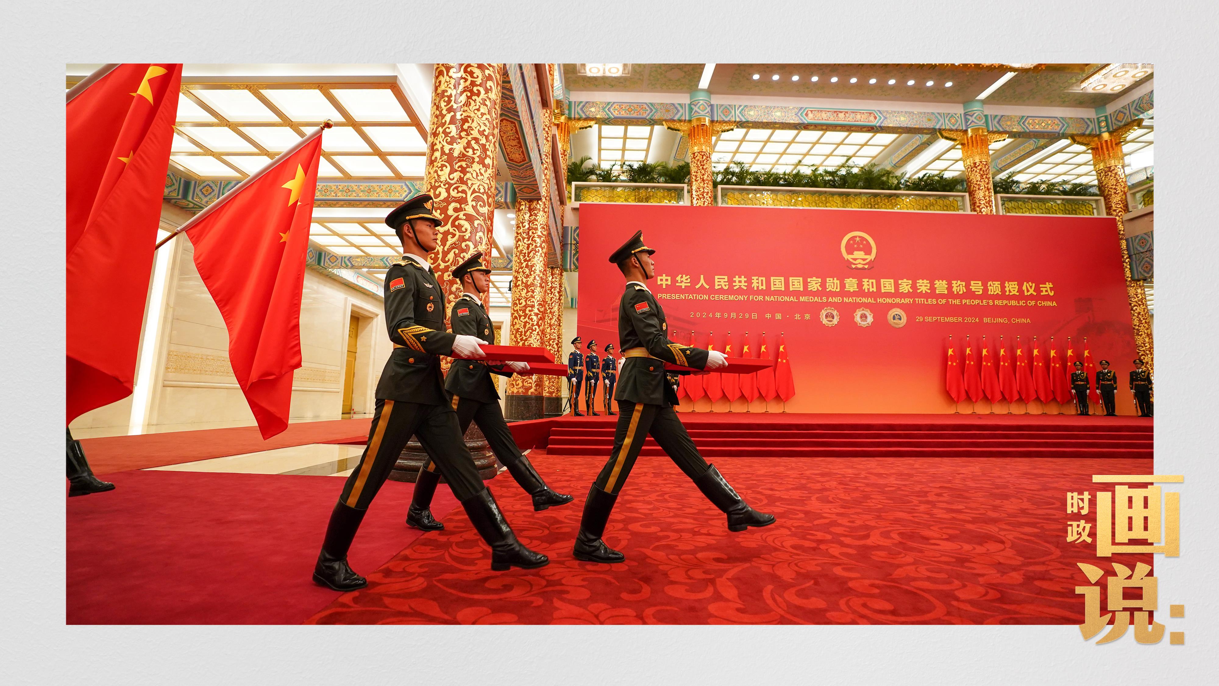 9月29日上午,中華人民共和國國家勛章和國家榮譽(yù)稱號頒授儀式在人民大會堂隆重舉行。中共中央總書記、國家主席、中央軍委主席習(xí)近平向國家勛章和國家榮譽(yù)稱號獲得者分別授予“共和國勛章”“友誼勛章”和國家榮譽(yù)稱號獎(jiǎng)?wù)虏l(fā)表重要講話。