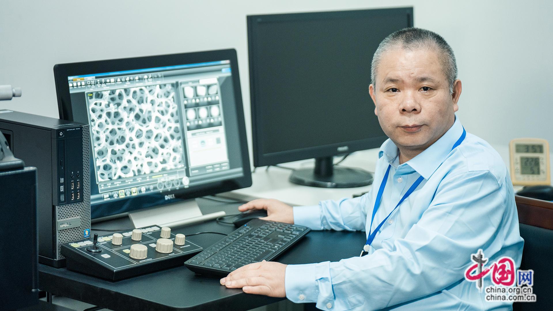 走進湖南常德力元新材料有限責(zé)任公司(以下簡稱常德力元),肖進春正在泡沫金屬材料研究所SEM分析室對實驗樣品進行真空掃描,不一會兒,電腦屏幕上出現(xiàn)了高分辨率的樣品表面結(jié)構(gòu)圖,在獲得相關(guān)數(shù)據(jù)拍照后,肖進春又來到電鍍室觀察實驗情況……