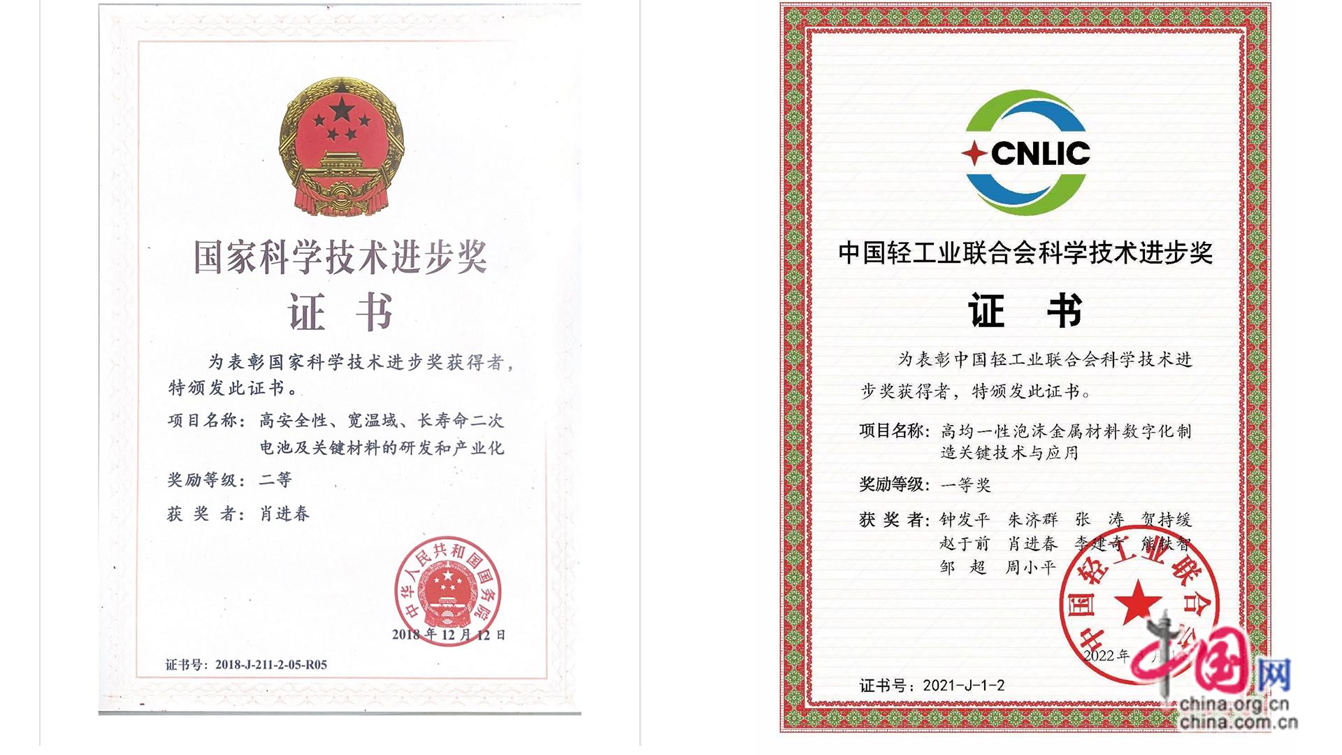 回顧自己在常德力元26年的在職業(yè)生涯,肖進春共獲得了25項發(fā)明專利授權(quán),參與了多項科研項目并多次獲得國家級和省級科學(xué)技術(shù)進步獎。其參與的《高安全性、寬溫域、長壽命二次電池及關(guān)鍵材料的研發(fā)和產(chǎn)業(yè)化》獲得了國家科學(xué)技術(shù)進步獎二等獎,《高均一性泡沫金屬材料數(shù)字化制造關(guān)鍵技術(shù)與應(yīng)用》獲得了中國輕工業(yè)聯(lián)合會科學(xué)技術(shù)進步獎一等獎。其主持的《鎳氫電池電極低成本改善》榮獲“2022年度輕工業(yè)行業(yè)職工優(yōu)秀技術(shù)創(chuàng)新成果”榮譽。