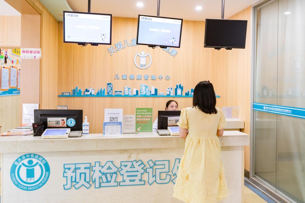 大溪溝街道社區(qū)衛(wèi)生服務中心,醫(yī)護人員正在為患兒家長辦理登記。(羅云希 攝)