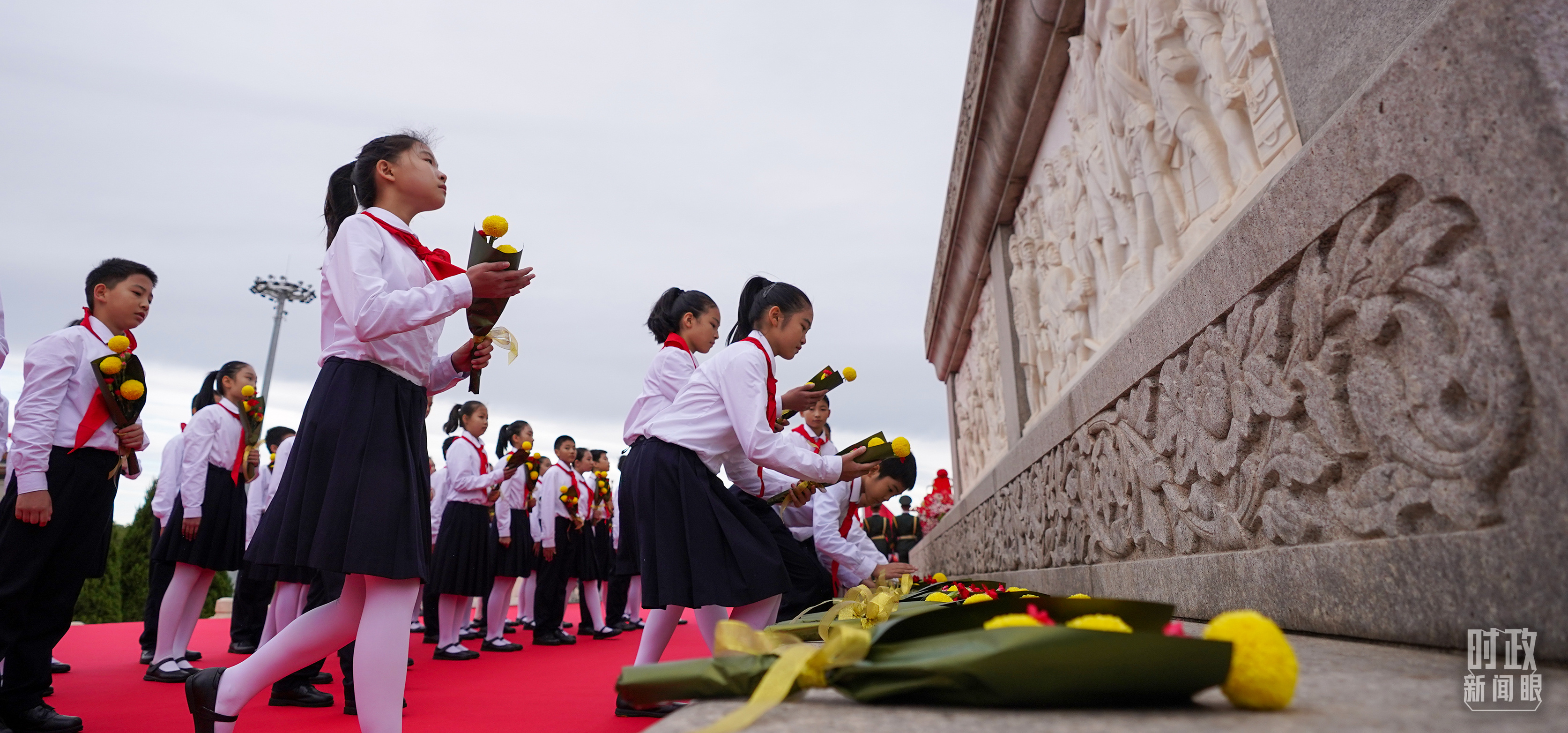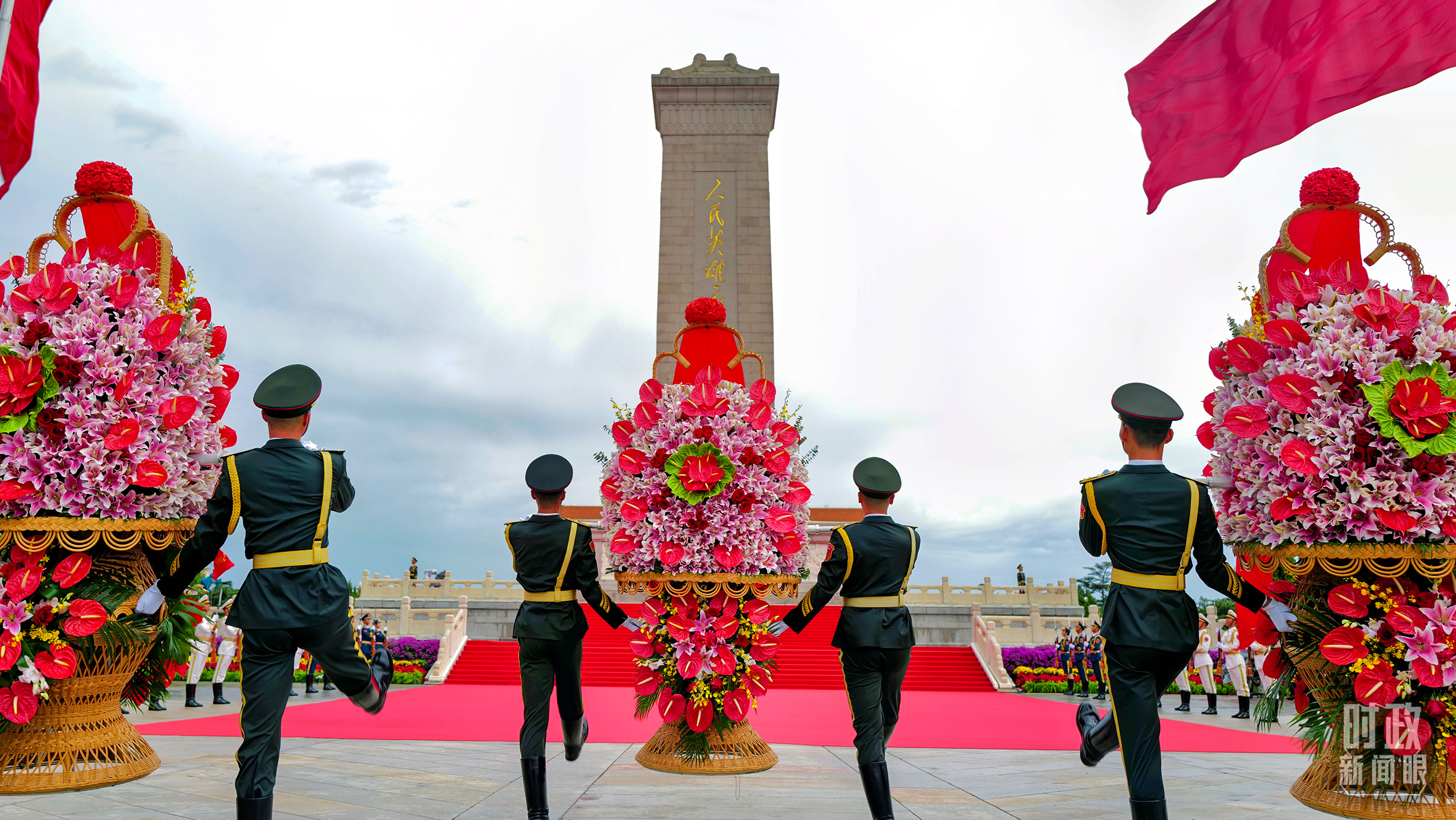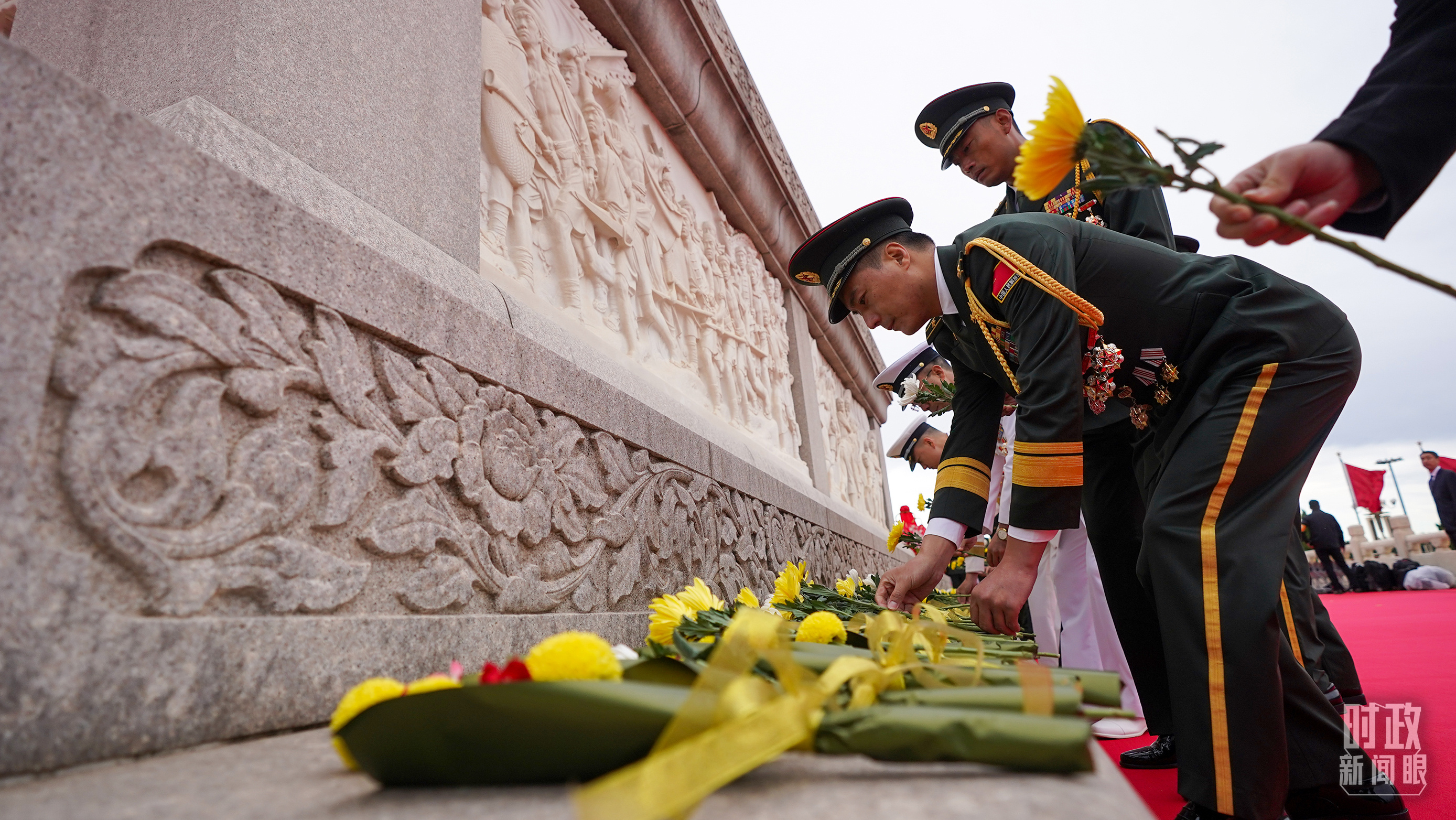 正逢新中國(guó)成立75周年,今年參加儀式的人數(shù)規(guī)模有所增加?!稌r(shí)政新聞眼》現(xiàn)場(chǎng)了解到,相較去年,人民英雄紀(jì)念碑基座上增加了4名禮兵。今年參加儀式的各界代表增至2400多名。