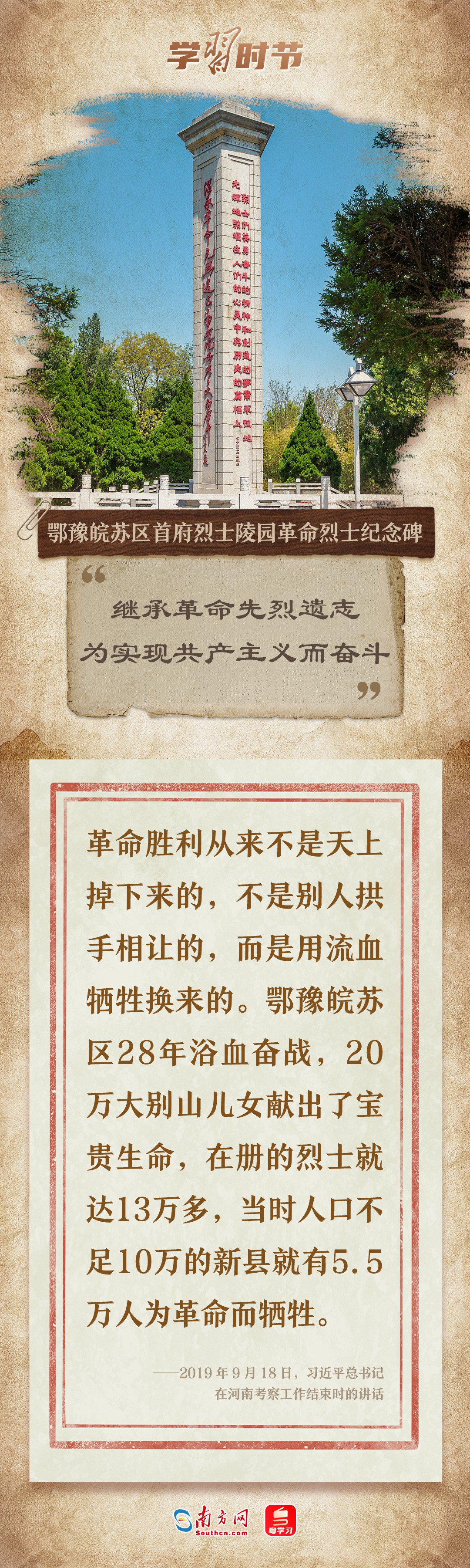 今年9月30日是我國第11個烈士紀(jì)念日,在新中國成立75周年之際,讓我們跟隨總書記的重要論述,走近那些為紀(jì)念中華民族掌握自己命運(yùn)、開創(chuàng)國家發(fā)展新路的烈士豐碑,共同緬懷閃耀在歷史長河中的英魂!