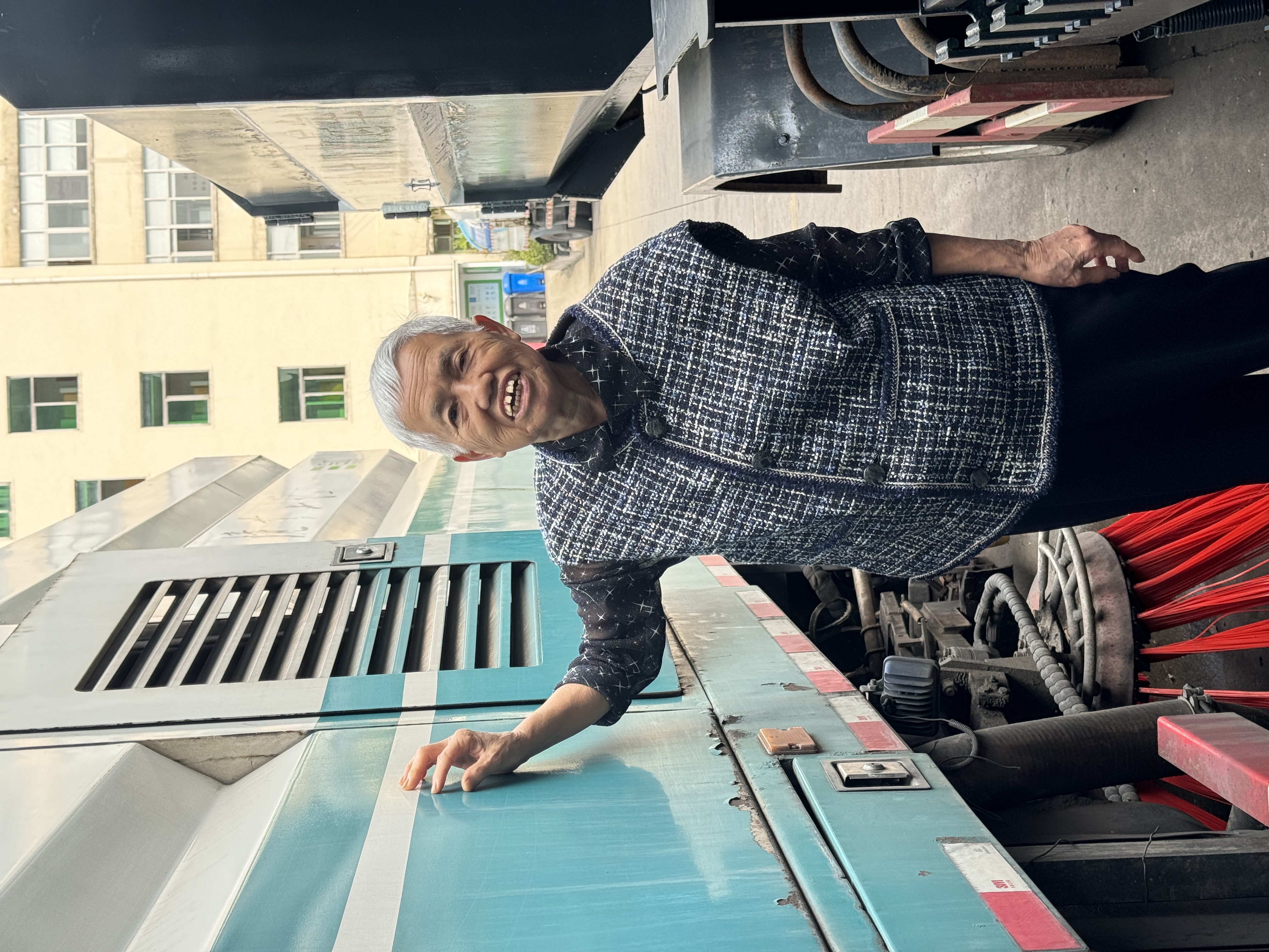 許先林和現(xiàn)代垃圾清洗車。