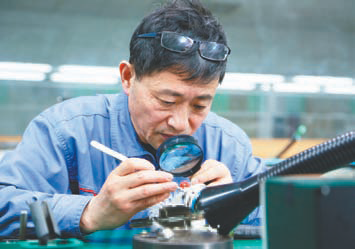 王南石在企業(yè)主要從事伺服控制系統(tǒng)的裝配調(diào)試工作。裝配航天產(chǎn)品對精密度要求極高,有些零部件的誤差要控制在0.001毫米以內(nèi)。年輕時,王南石在生產(chǎn)線上常常一待就是一整天,只為在顯微鏡下打磨一個零部件,因此練就了令人驚嘆的手感和耳力。他不僅能“穩(wěn)準狠”制造出合格產(chǎn)品,還能在環(huán)境噪聲高達70分貝的車間里辨別細微的“嘯叫”、指出故障所在,被同事們稱為“神耳”。他還有一個外號——“微米手”,因為在進行精細研磨這個工序時,研磨的尺寸是以微米級計量的,而王南石手工研磨的磨削量非常小,堪稱“微米級手感”。
