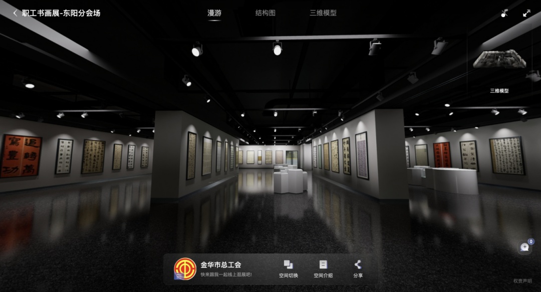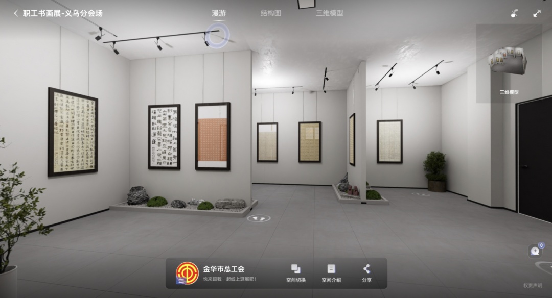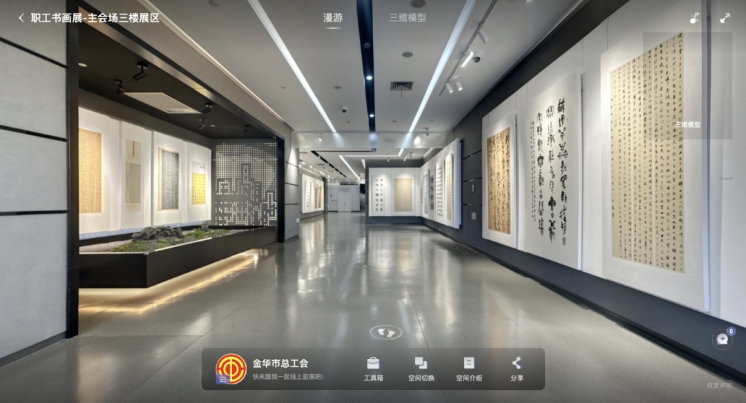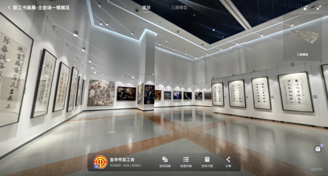 “云游”金華,盡賞書(shū)畫(huà)之美。由中華全國(guó)總工會(huì)宣傳教育部、浙江省總工會(huì)共同主辦的全國(guó)職工文體示范活動(dòng)、第九屆全國(guó)職工書(shū)畫(huà)展運(yùn)用數(shù)字VR展廳技術(shù),帶您置身浙江金華,一同探索本次書(shū)畫(huà)展線上VR展廳的精彩內(nèi)容!