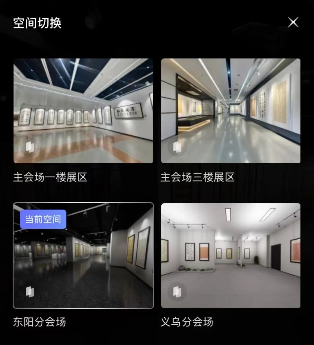 線上VR展廳涵蓋了金華主會(huì)場(chǎng)、東陽(yáng)橫店、義烏分會(huì)場(chǎng),所有入展作品均可在線上永久免費(fèi)欣賞。