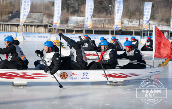 冰上龍舟是在冰天雪地之中進(jìn)行的創(chuàng)新冰雪運(yùn)動項(xiàng)目,打破了龍舟運(yùn)動季節(jié)局限性,更具速度與激情,展現(xiàn)了選手們風(fēng)雨同舟、奮勇爭先的團(tuán)隊(duì)精神。