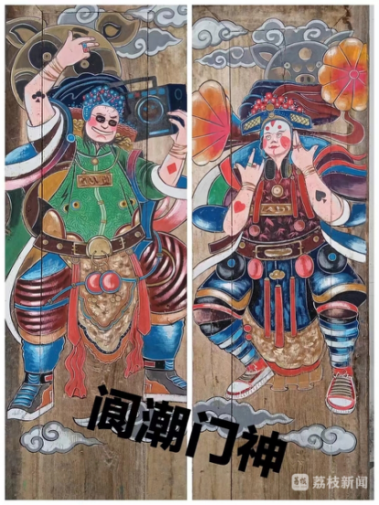 我從事畫門神和門神修復制作已經(jīng)有20多個年頭了,我對門神畫的感情越來越深,認識也越來越深刻,其中一點就是,傳統(tǒng)技藝也要與時俱進,才能保持鮮活的生命力,包括計算機等的使用,創(chuàng)作主題的更新等等。如今,卡通版門神畫很受年輕人喜歡,都說這是新閬潮,這對門神畫非遺的傳承非常重要。