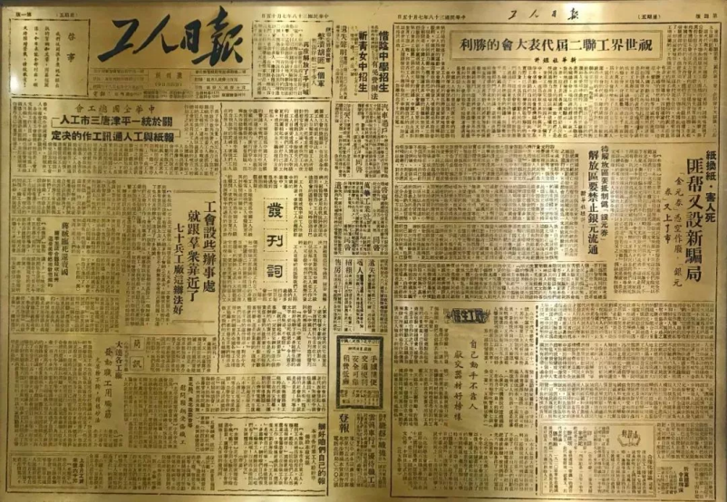 1949年7月15日,《工人日?qǐng)?bào)》正式創(chuàng)刊,發(fā)刊詞說,“工人日?qǐng)?bào)要成為中國工人階級(jí)的鼓舞者”“要成為中國工人階級(jí)的喉舌,使我們工人有發(fā)表意見與討論問題的園地”。