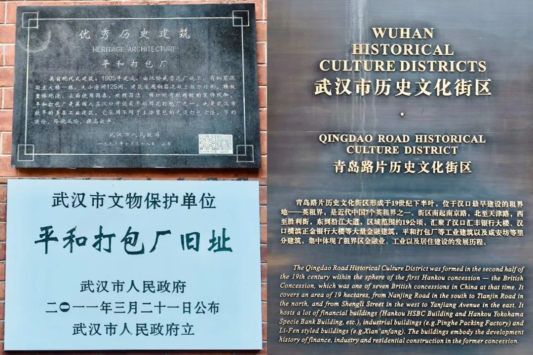 平和打包廠,始建于1905年,是早期英商在漢口租界開設(shè)最早的棉花打包廠之一,該廠以棉花打包為主,兼打包牛羊皮、羽毛、豬鬃、苧麻等貨物。其紅磚廠房?jī)?nèi)聚集了上千名中國(guó)工人。