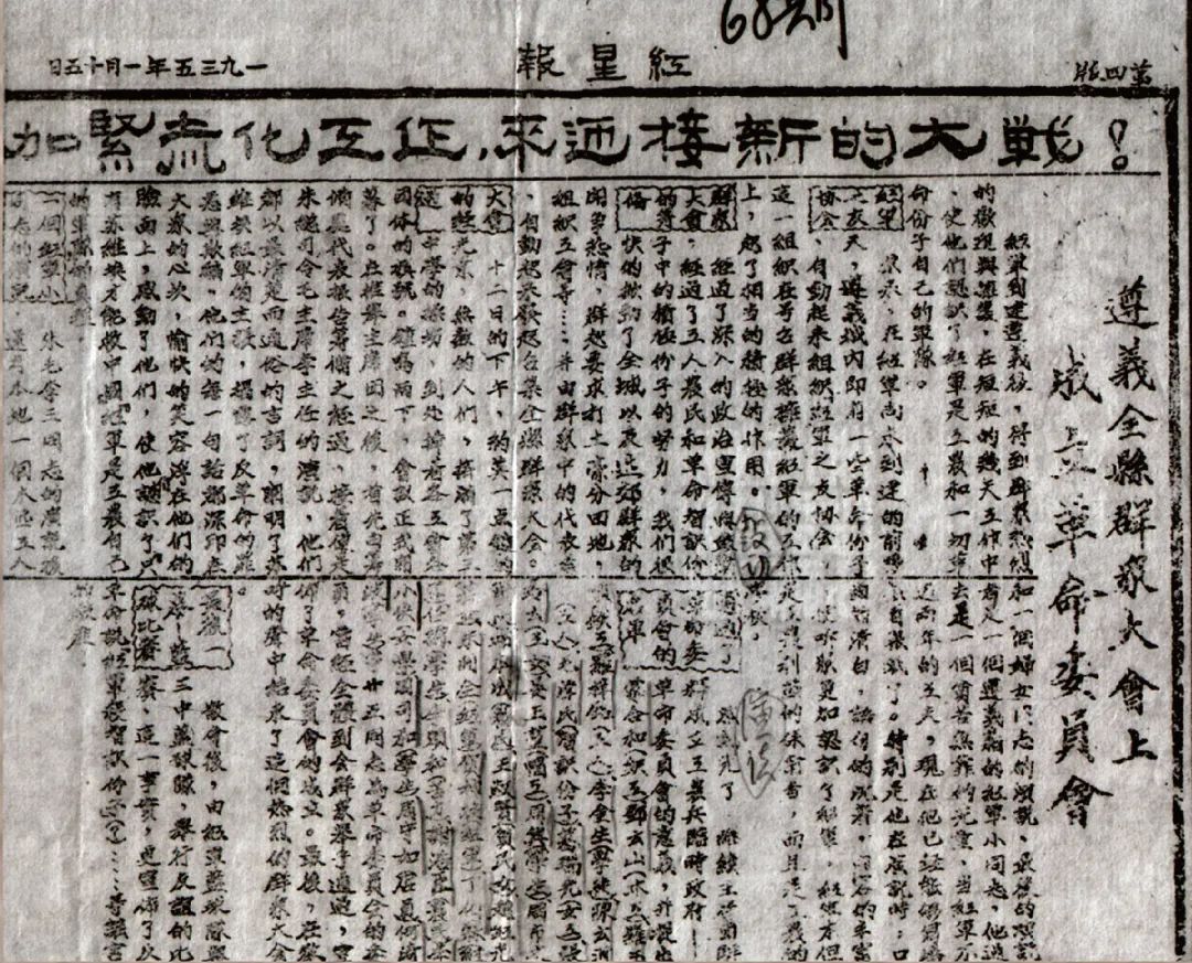 《紅星報(bào)》刊稿“遵義全縣群眾大會(huì)上成立革命委員會(huì)”