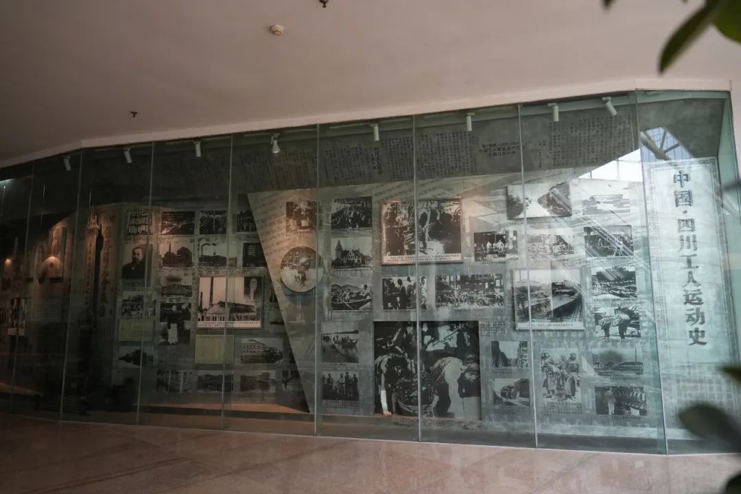 藝術墻收錄有“四川工人運動大事記”,中國“工人運動”各重要階段的歷史圖片;以及與“工人運動”相關的各時期報刊文獻資料等。它以現(xiàn)代博物館櫥窗展演方式,用多種藝術處理手法,圖文并茂、言簡意賅,勾勒出一幅波瀾壯闊的工人運動發(fā)展史。