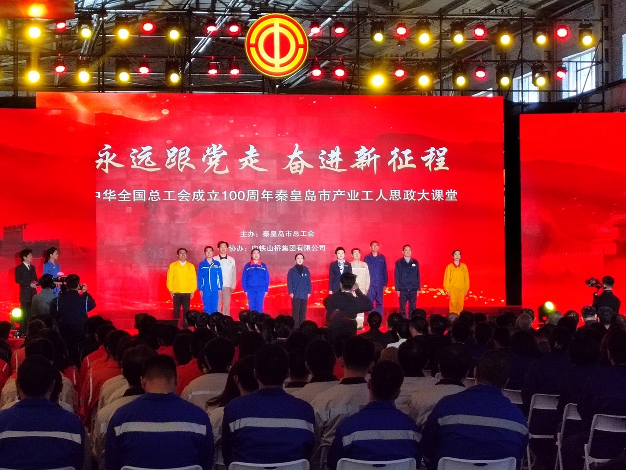 “永遠跟黨走,奮進新征程!”4月28日上午,河北秦皇島市總工會主辦的“永遠跟黨走 奮進新征程 中華全國總工會成立100周年 秦皇島市產(chǎn)業(yè)工人思政大課堂”在中鐵山橋集團有限公司道岔車間舉行。來自全市的400余名勞模工匠、產(chǎn)業(yè)工人和工會工作者代表齊聚百年工業(yè)搖籃,大家精神飽滿、誓言錚錚,共享一場思想洗禮和精神淬煉。