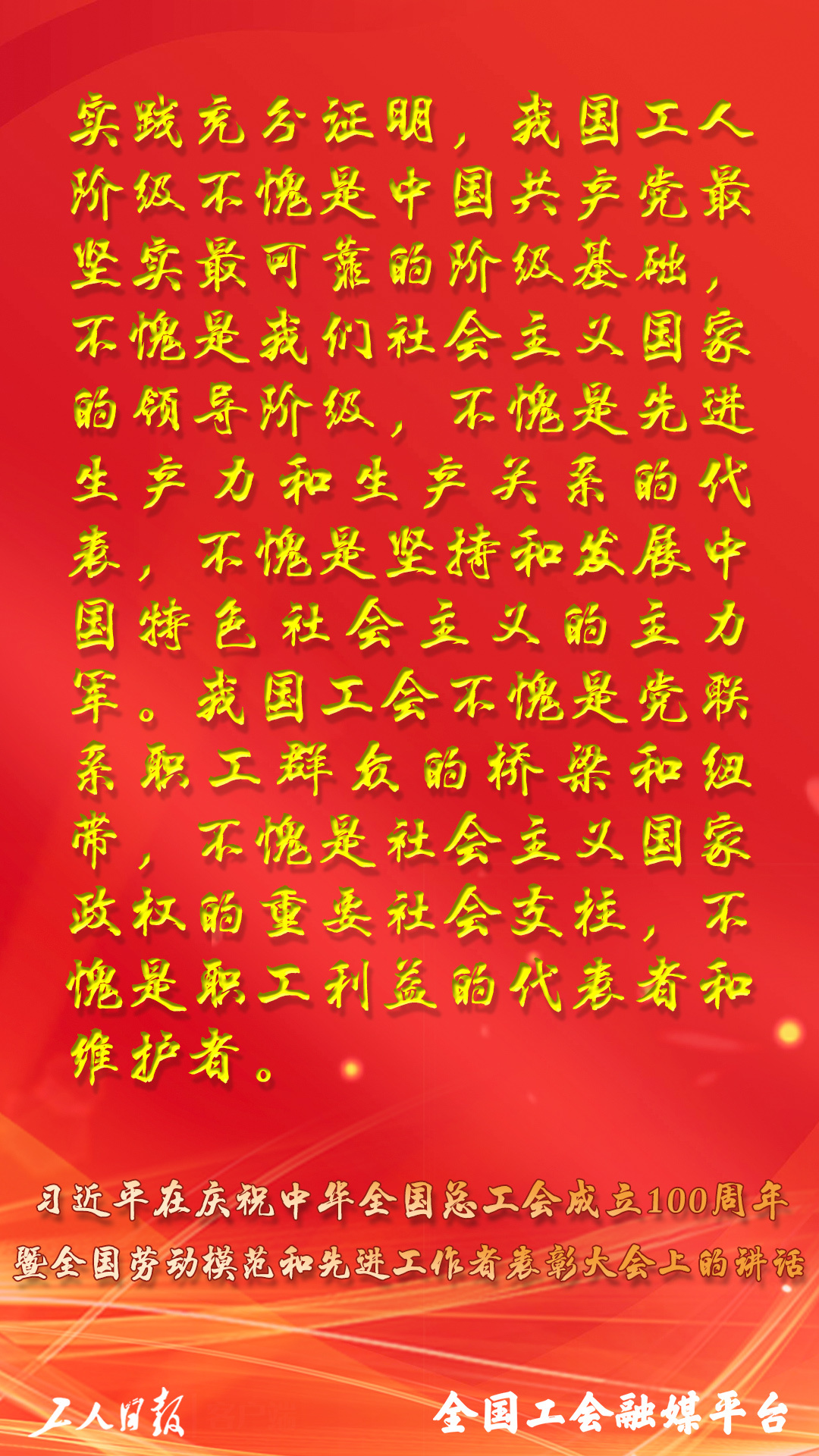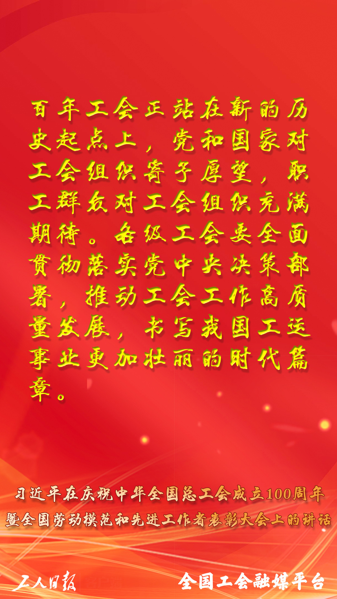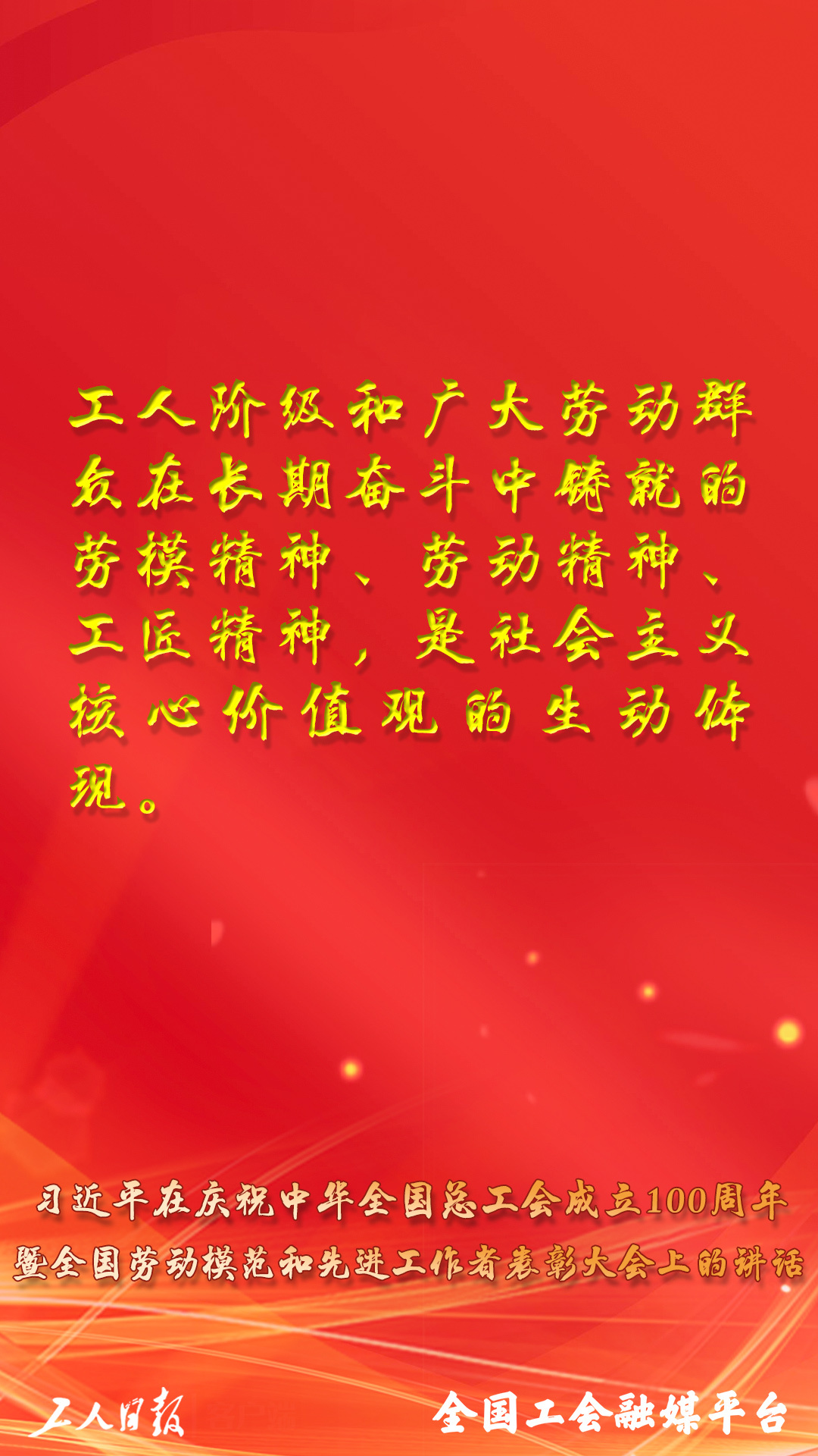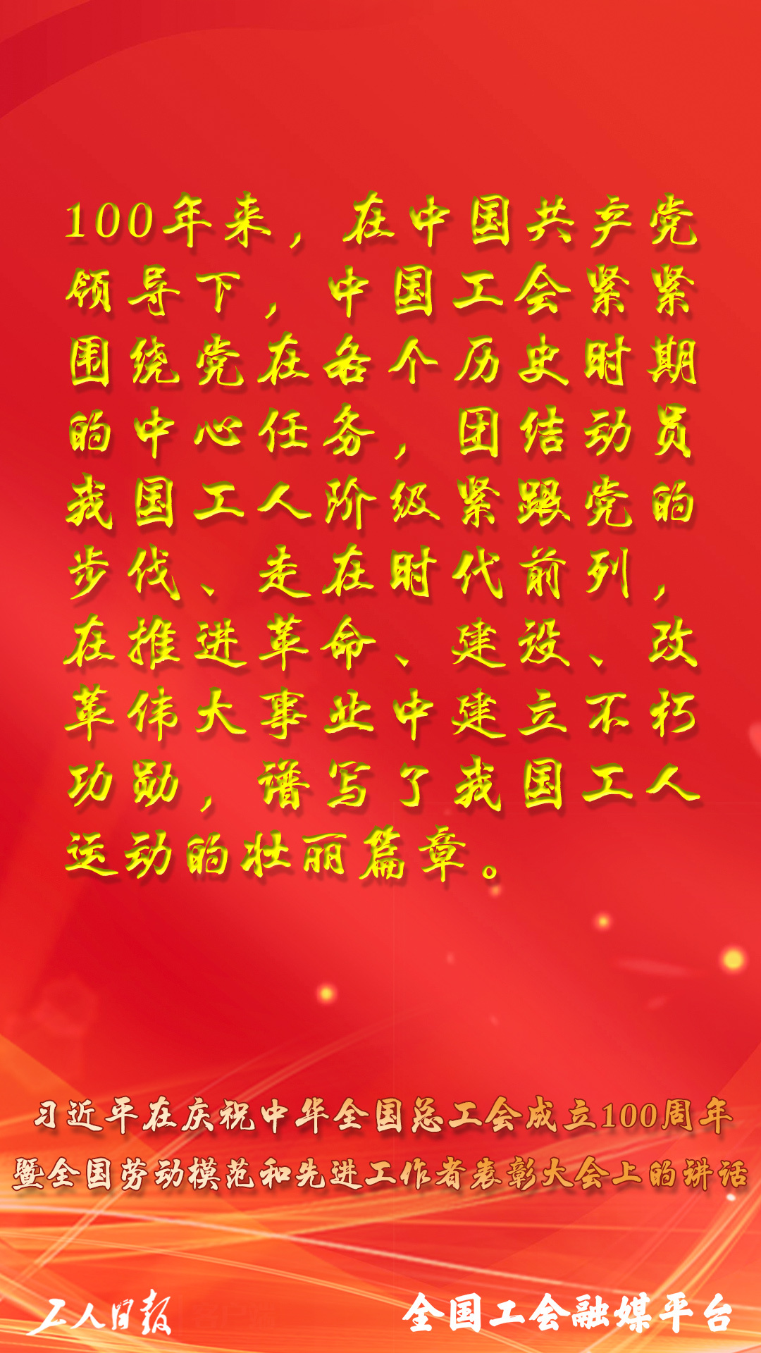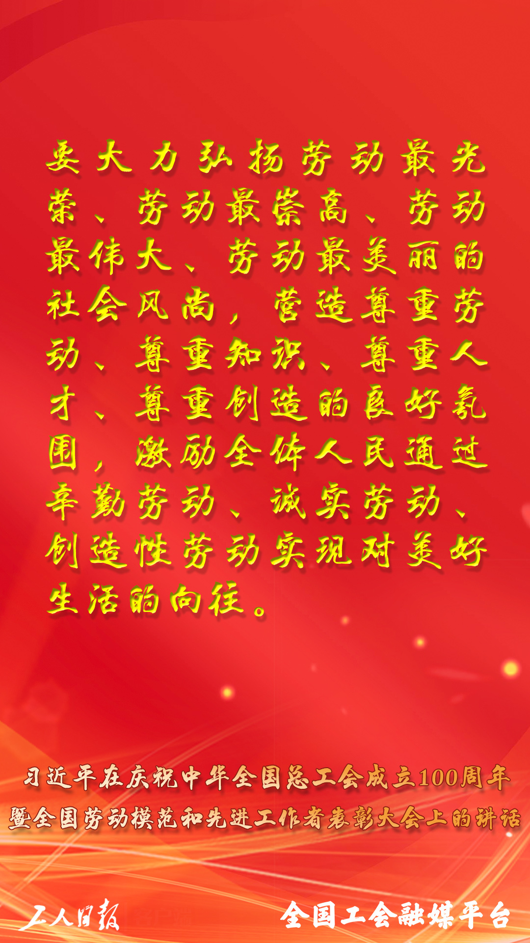 習(xí)近平總書記在慶祝中華全國總工會(huì)成立100周年暨全國勞動(dòng)模范和先進(jìn)工作者表彰大會(huì)上的講話,金句來了!