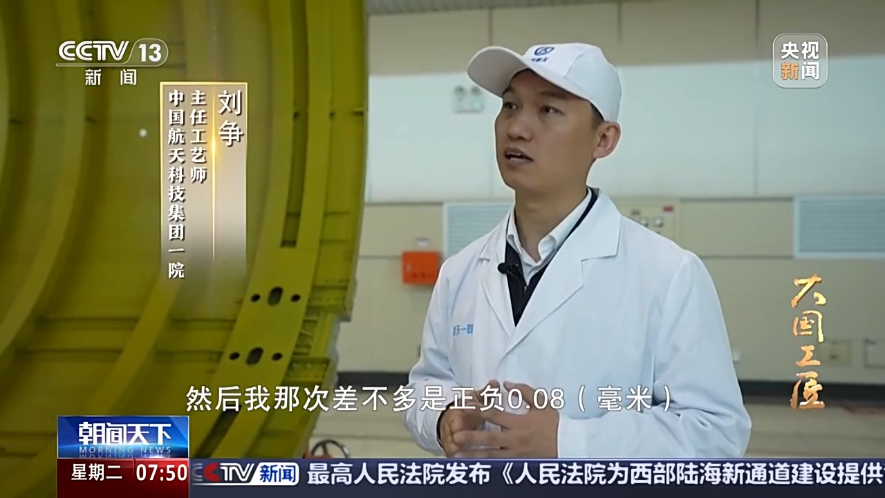 中國航天科技集團(tuán)一院主任工藝師 劉爭:那個數(shù)據(jù)是100%合格,而且精度很高,我們以前呢,要加工好幾次才能保證這個精度正負(fù)0.15毫米,然后我那次差不多是正負(fù)0.08毫米,將近提高了一倍吧,而且是一次加工完成。
