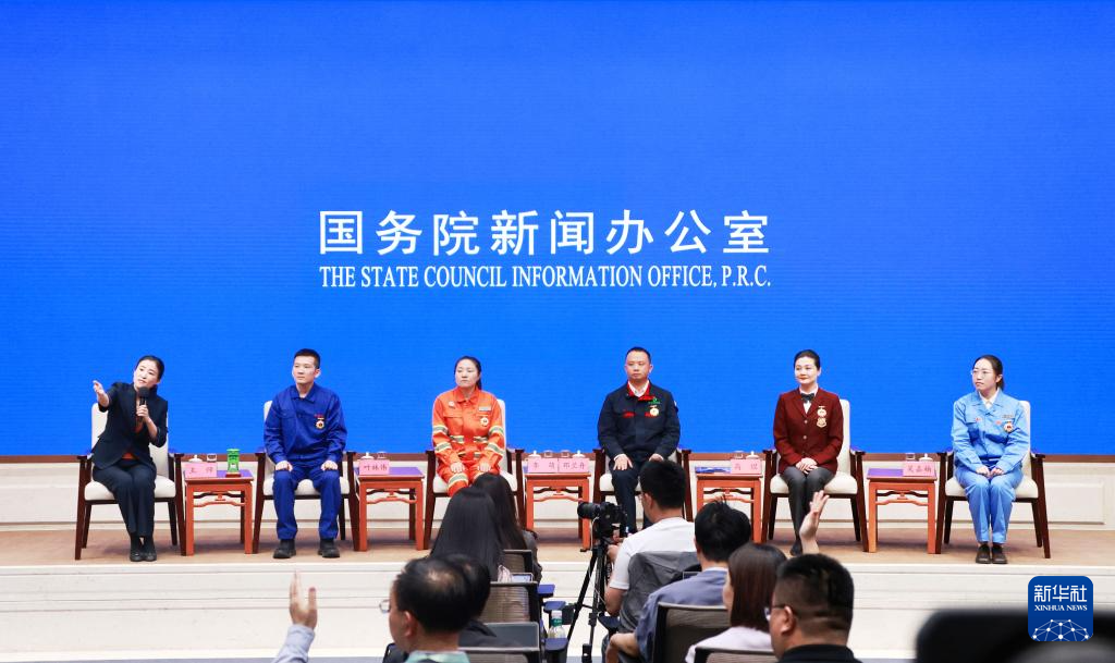 4月29日,國務(wù)院新聞辦公室在北京舉行“新征程上的奮斗者”中外記者見面會,全國勞動模范和先進工作者代表圍繞“弘揚勞模精神 勇?lián)鷷r代使命”與中外記者見面交流。新華社記者 潘旭 攝