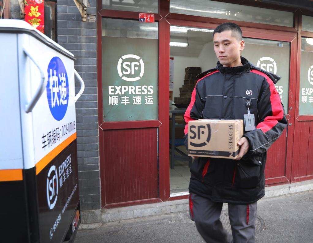 北京前門(mén)石頭胡同快遞站點(diǎn)“快遞小哥”劉闊在整理包裹(2019年2月1日攝)。新華社記者 李德欣 攝