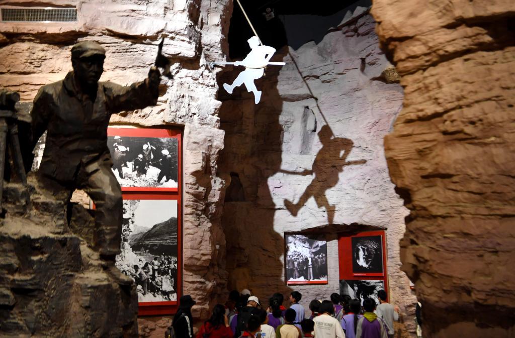 游客在河南省林州市紅旗渠紀(jì)念館參觀(2023年4月27日攝)。新華社記者 郝源 攝