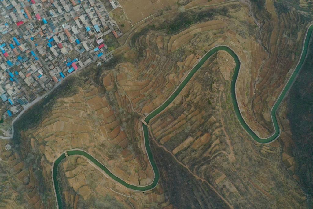 在河南省林州市任村鎮(zhèn)陽(yáng)耳莊村拍攝的紅旗渠總干渠(2025年3月25日攝,無(wú)人機(jī)照片)。新華社記者 郝源 攝