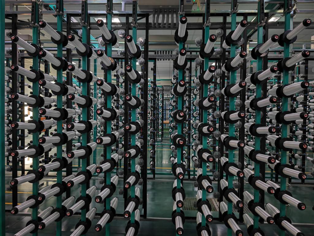 這是2025年3月12日在河南光遠(yuǎn)新材料股份有限公司車(chē)間拍攝的電子玻纖。新華社記者 劉振坤 攝