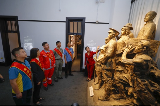 此次活動中,6位全國勞動模范身披綬帶,首先集體參觀了漢口中華全國總工會舊址紀念館,之后手持“時光列車”車票,踏上了百年工運的時光之旅。