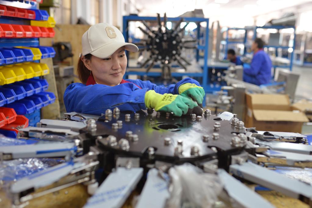 3月30日,在山東省青島市城陽區(qū)夏莊街道青島義龍裝備制造股份有限公司生產(chǎn)車間內(nèi),工人在組裝包裝機(jī)。新華社發(fā)(王海濱攝)