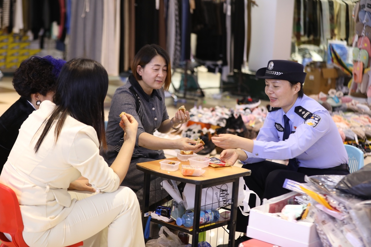 立夏后的中原大地,暑氣漸濃。走進河南規(guī)模最大的商貿物流中心——新鄭市龍湖鎮(zhèn)華南城,這里商鋪林立,車流不息,熙熙攘攘的人流中,一抹藏藍色的身影不停穿梭其間。