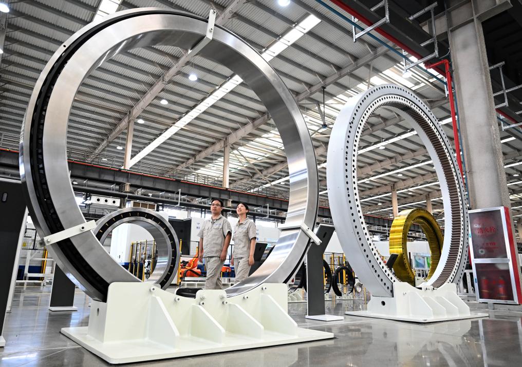 圖中左側(cè)軸承為尹雙陽參與攻關(guān)制作的大功率風(fēng)電主軸承樣品。新華社記者 李嘉南 攝