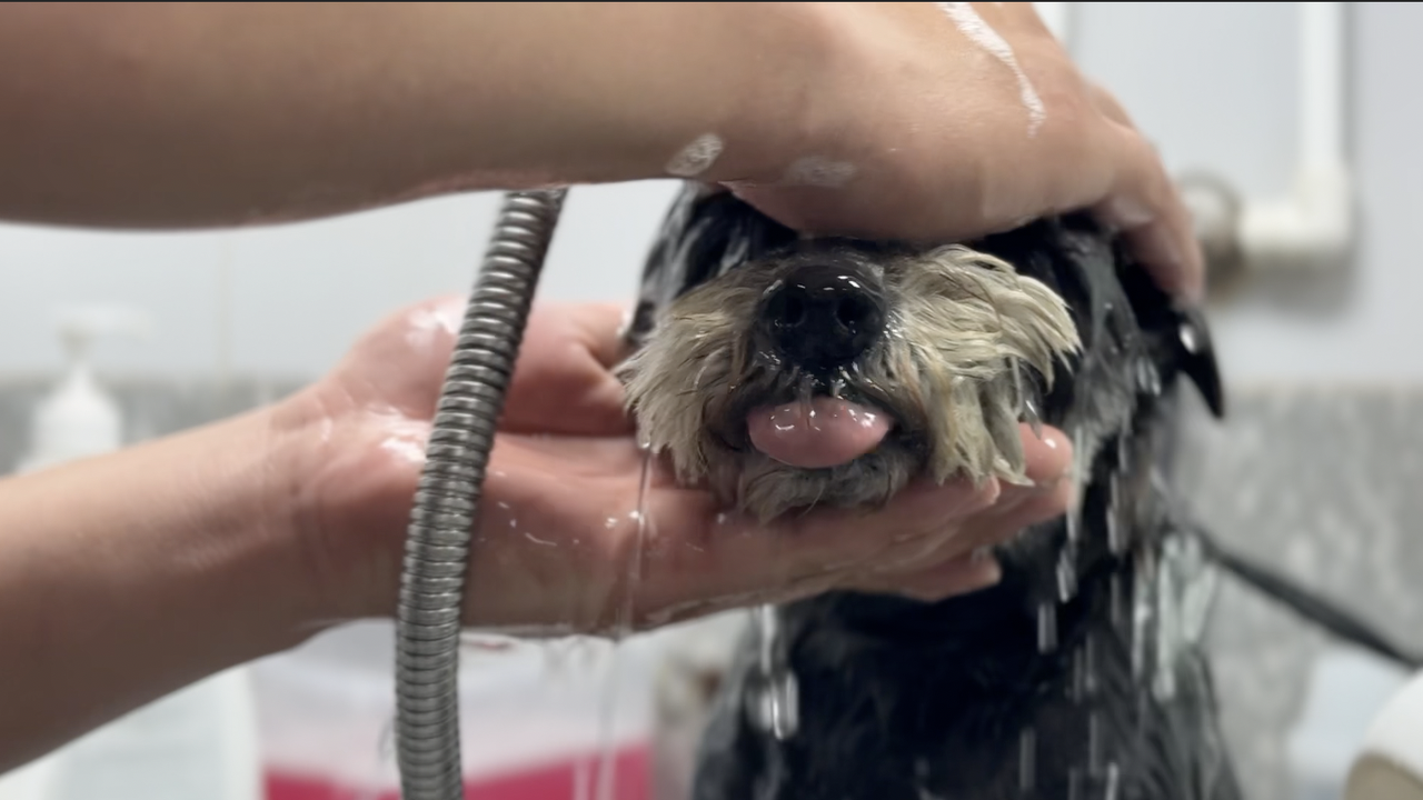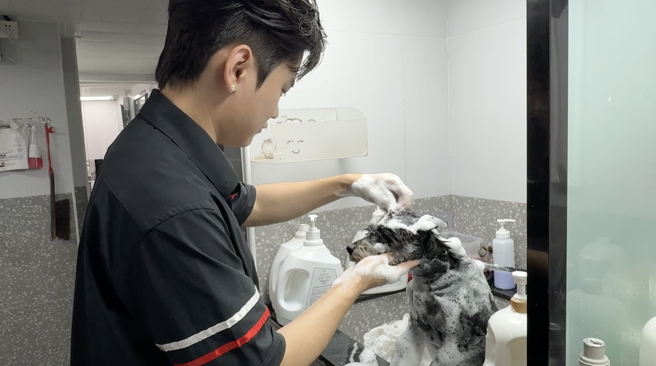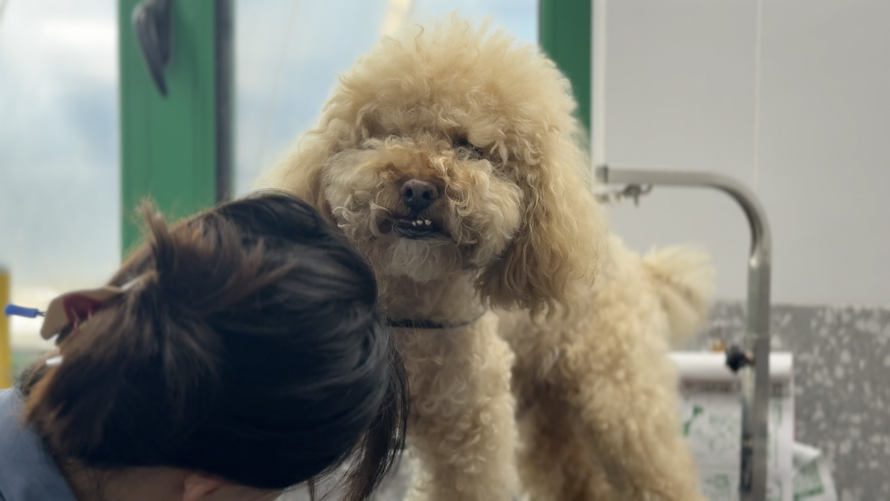 “在工作中,我們會遇到各種性格的狗狗,有的活潑,有的靦腆,也有的容易緊張,這就需要剛接觸它們的時候,要先安撫它們的情緒,讓它們熟悉美容師。也有同事遇到過情緒特別激動的狗狗,會把美容師抓傷、咬傷。不過我們也都有經(jīng)驗了,也會做好防護措施?!睆埐ㄕf。