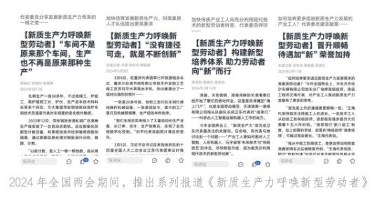 創(chuàng)新傳播方式、手段,探索運用人工智能等新技術、新應用,打造“工”字特色原創(chuàng)精品,貼近受眾需求。全國兩會期間,創(chuàng)新推出融媒報道《面對人工智能,你有本領恐慌嗎?工人日報數(shù)字人記者把這個問題帶上全國兩會》?!吨泄仓醒雵鴦赵宏P于深化產(chǎn)業(yè)工人隊伍建設改革的意見》發(fā)布后,及時推出融媒報道《數(shù)說“產(chǎn)改”成績單→》,挑選展現(xiàn)一線產(chǎn)業(yè)工人風采的精美照片制作成“產(chǎn)改”成績海報,運用新媒體手段SVG動畫形式將12張海報動態(tài)展示,讓讀者沉浸式踏上“產(chǎn)改”之旅。
