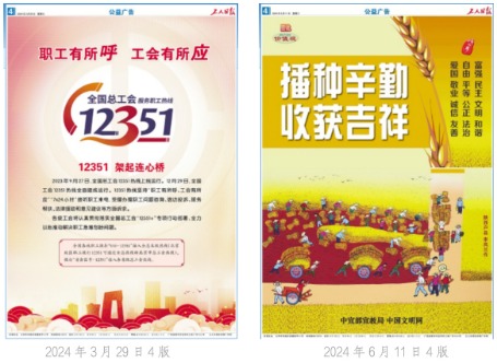 積極刊發(fā)公益報道、參與公益活動,傳遞溫暖,弘揚正能量,產(chǎn)生積極的社會效果。全年共刊發(fā)《節(jié)約用水從我做起》《12351架起連心橋職工有所呼工會有所應》《播種辛勤收獲吉祥》等22個整版公益廣告。