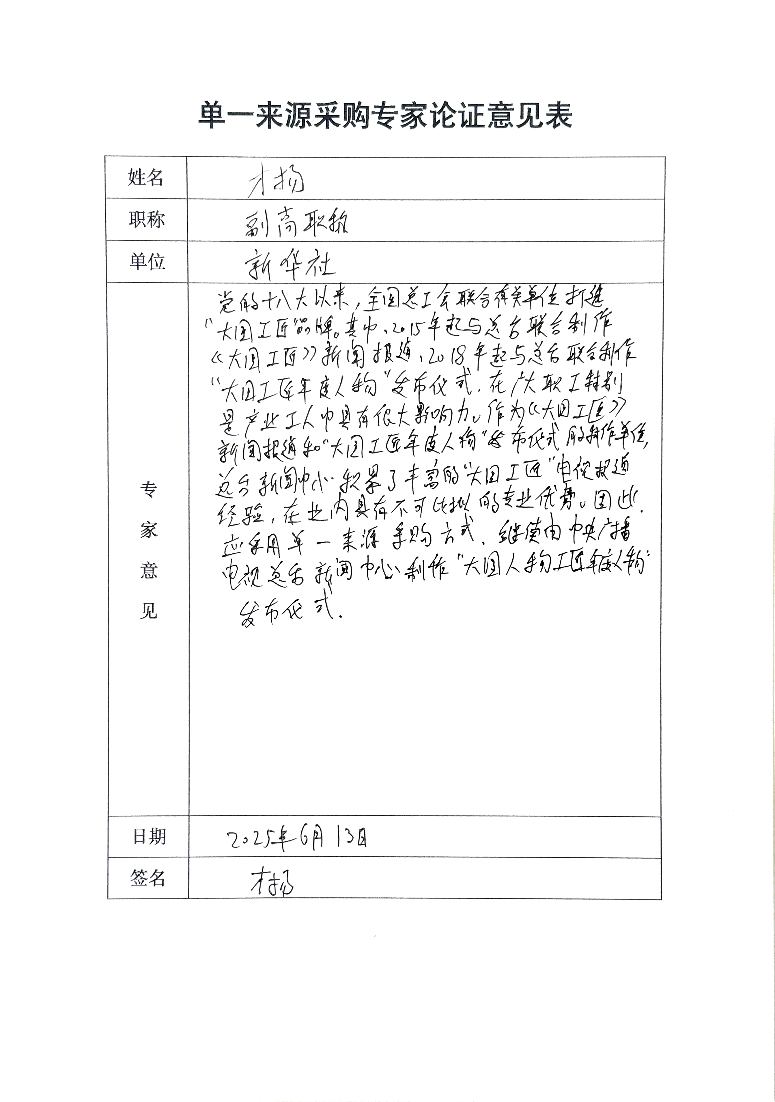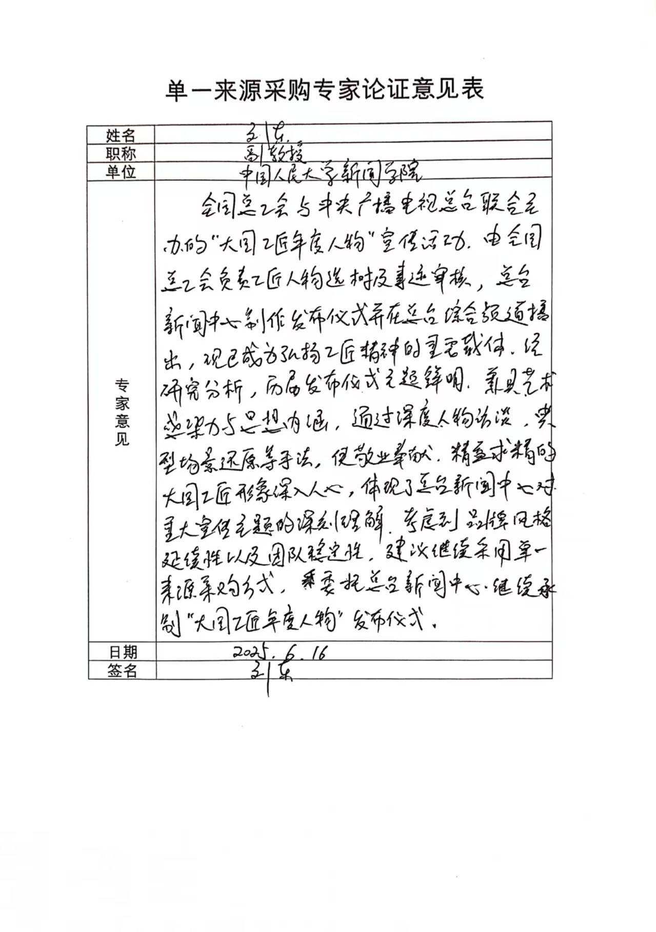 全國(guó)總工會(huì)宣傳教育部申請(qǐng)“大國(guó)工匠年度人物”發(fā)布儀式項(xiàng)目采用單一來(lái)源方式采購(gòu),該項(xiàng)目擬由中央廣播電視總臺(tái)新聞中心承擔(dān)。現(xiàn)予以公示。公示期限從2025年6月17日起至2025年6月23日止。