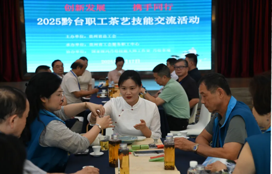 以茶為媒、以技會(huì)友。6月17日,以“創(chuàng)新發(fā)展、攜手同行”為主題的2025黔臺(tái)職工茶藝技能研討交流暨茶文化品鑒活動(dòng)在貴陽(yáng)拉開(kāi)帷幕,來(lái)自黔臺(tái)兩地的60名職工齊聚一堂,同臺(tái)切磋茶技藝,共揚(yáng)中華茶文化。