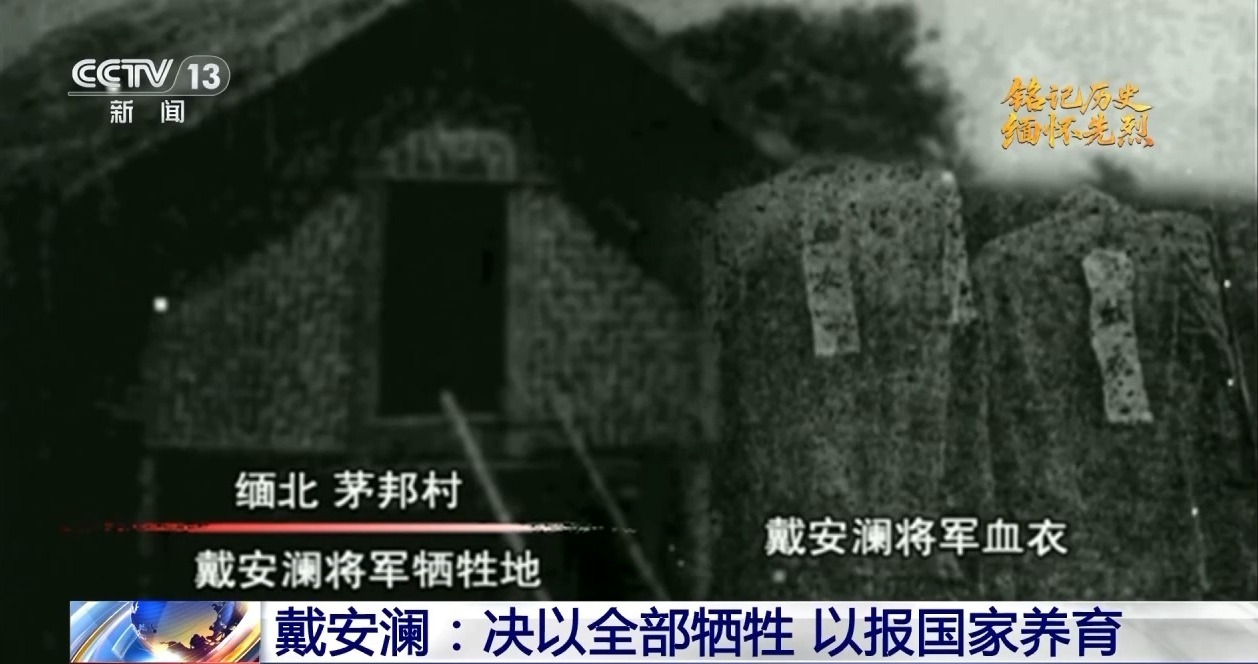 戴安瀾小兒子 戴澄東:(時(shí)任第200師第598團(tuán)團(tuán)長)鄭庭笈將軍就跟他講,你還有什么話要跟夫人講的?父親知道自己要去世了,他就要求他們扶他朝北,向北的方向看,因?yàn)楸狈骄褪亲鎳?,他要看一下自己的祖國,然后就犧牲了?/p>
