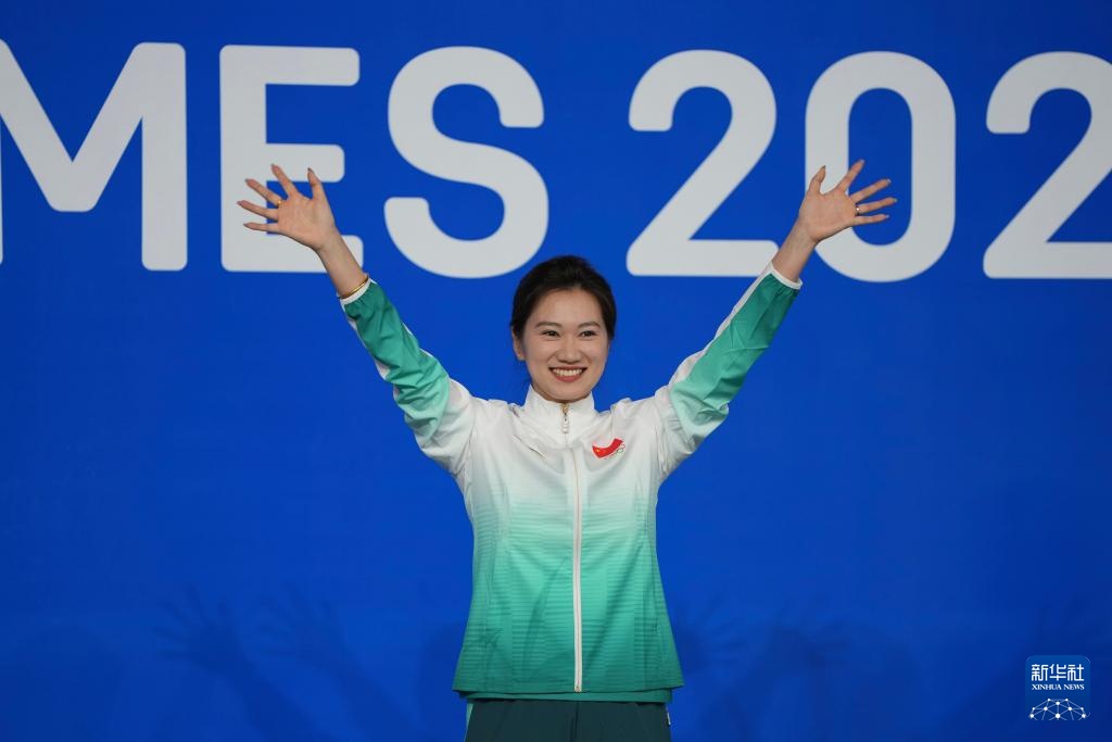 8月14日,女子花式臺球冠軍中國選手韓雨在頒獎儀式上。新華社記者 胥冰潔 攝