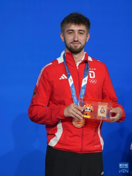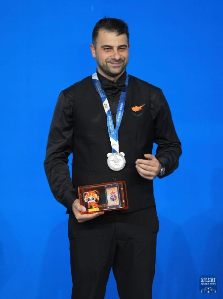 8月14日,臺球男子斯諾克亞軍塞浦路斯選手喬治烏在頒獎儀式上。新華社記者 胥冰潔 攝