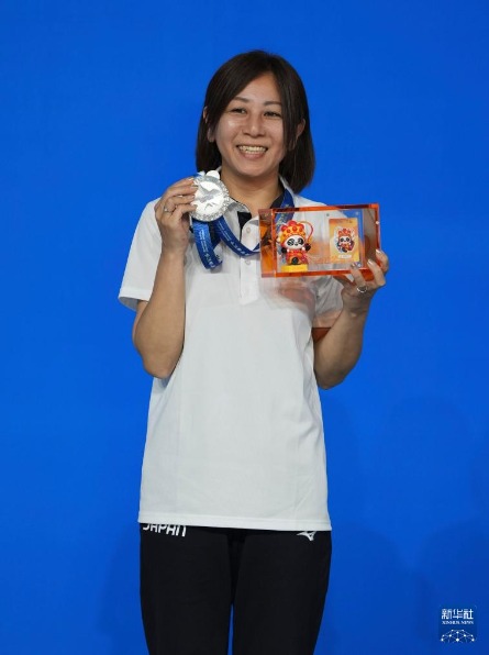 8月14日,臺球女子三庫開倫亞軍日本選手宮下綾香在頒獎儀式上。新華社記者 胥冰潔 攝
