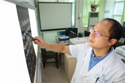 三亞市人民醫(yī)院的醫(yī)師在閱讀患者CT。