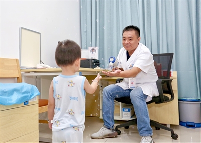 在上海兒童醫(yī)學(xué)中心三亞市婦女兒童醫(yī)院,醫(yī)師在為小朋友診療。