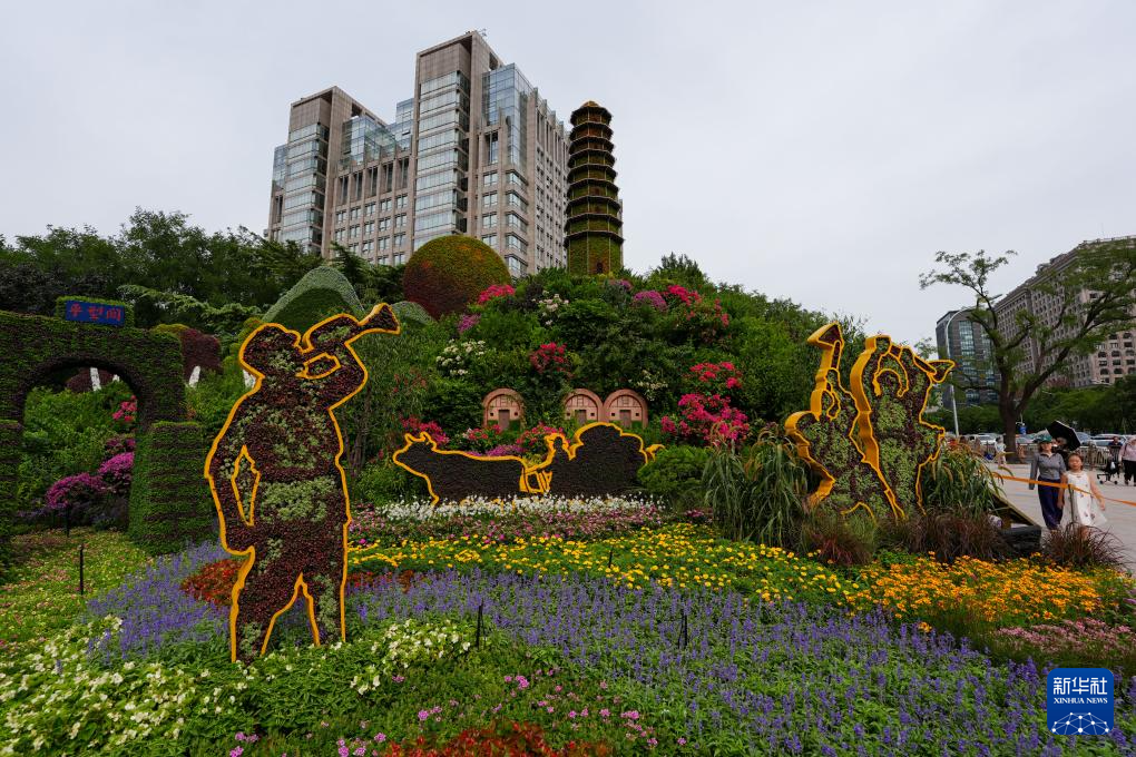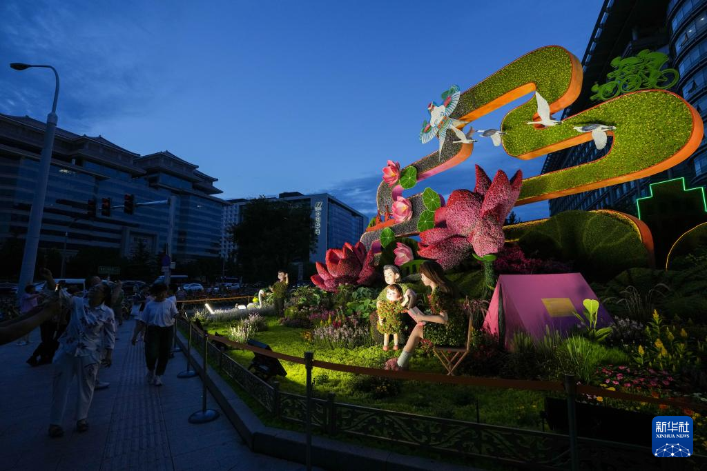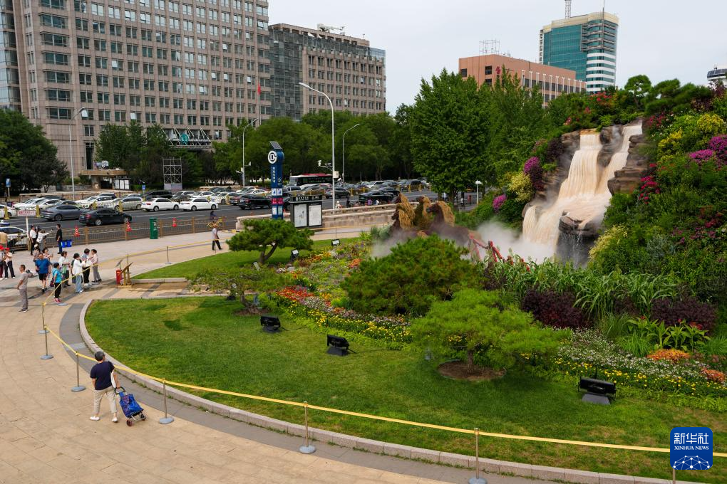 8月26日,人們在北京復(fù)興門參觀“美好明天”花壇。新華社記者 謝晗 攝