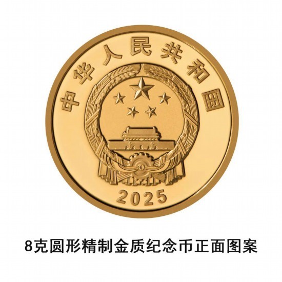 8克圓形金質(zhì)紀(jì)念幣為精制幣,含純金8克,直徑22毫米,面額100元,成色99.9%,最大發(fā)行量10000枚。