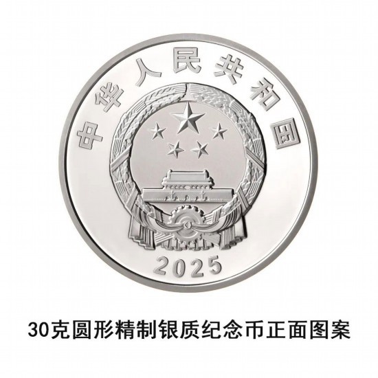 30克圓形銀質(zhì)紀(jì)念幣為精制幣,含純銀30克,直徑40毫米,面額10元,成色99.9%,最大發(fā)行量20000枚。