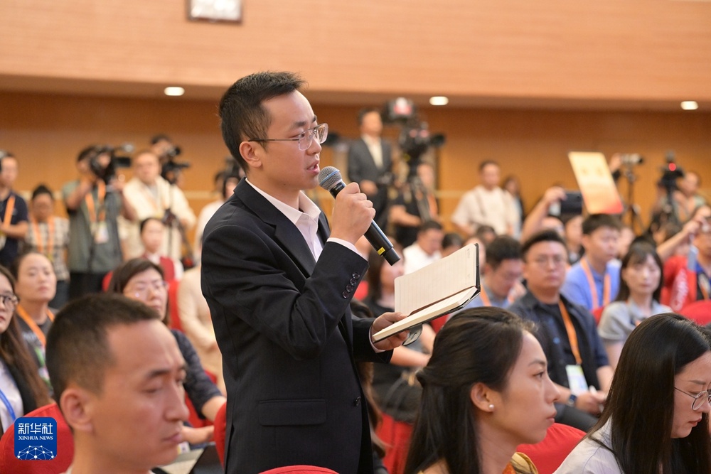 8月31日,中國人民抗日戰(zhàn)爭暨世界反法西斯戰(zhàn)爭勝利80周年紀(jì)念活動新聞中心在北京舉辦第三場記者招待會,退役軍人事務(wù)部副部長馬飛雄、國家文物局副局長孫德立介紹第四批國家級抗戰(zhàn)紀(jì)念設(shè)施、遺址名錄和著名抗日英烈、英雄群體名錄,抗戰(zhàn)紀(jì)念設(shè)施和抗戰(zhàn)遺址、遺物修繕保護(hù)等方面情況,并回答記者提問。這是記者在現(xiàn)場提問。新華社記者 李賀 攝