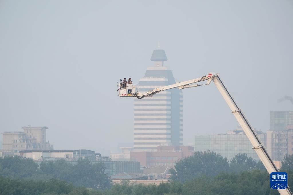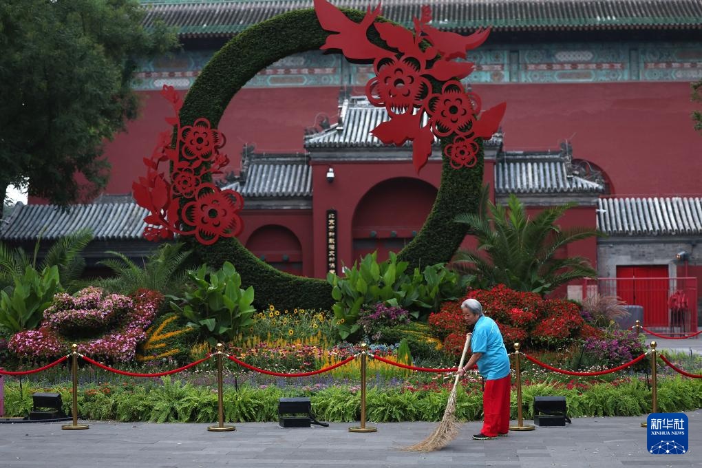 9月3日清晨,市民在北京鼓樓附近清掃街道。
