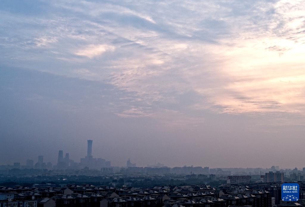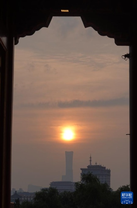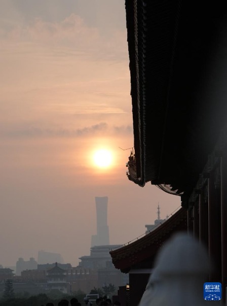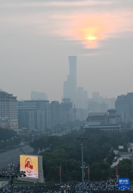 9月3日在天安門城樓上拍攝的北京的清晨。