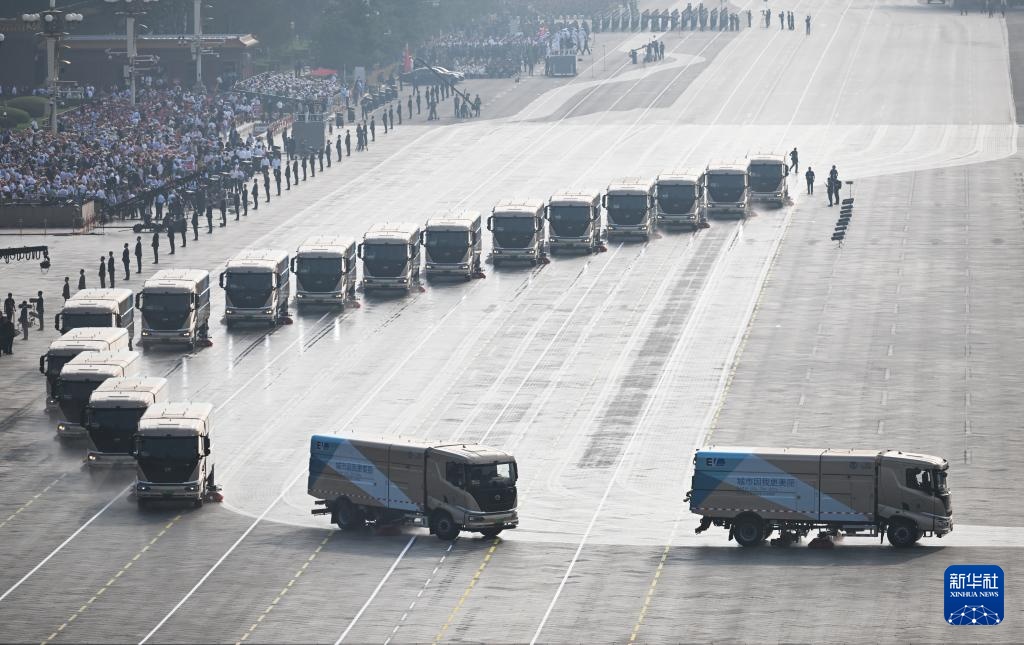 9月3日清晨,環(huán)衛(wèi)車在進(jìn)行路面清潔。