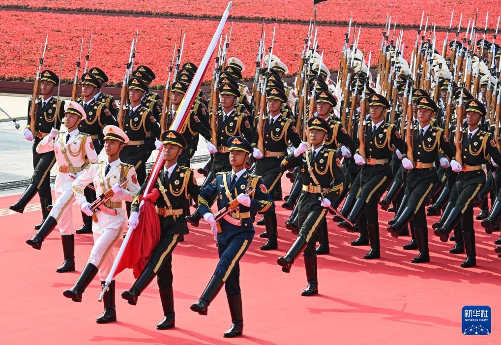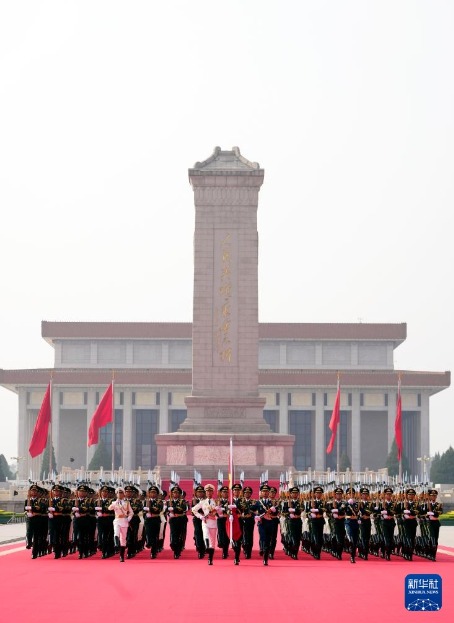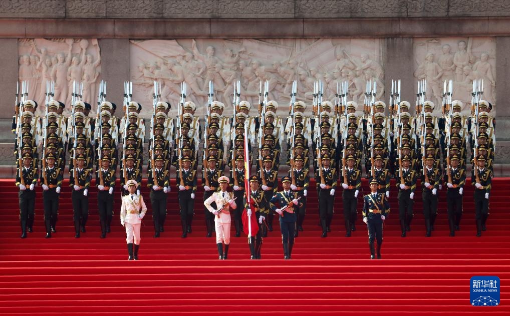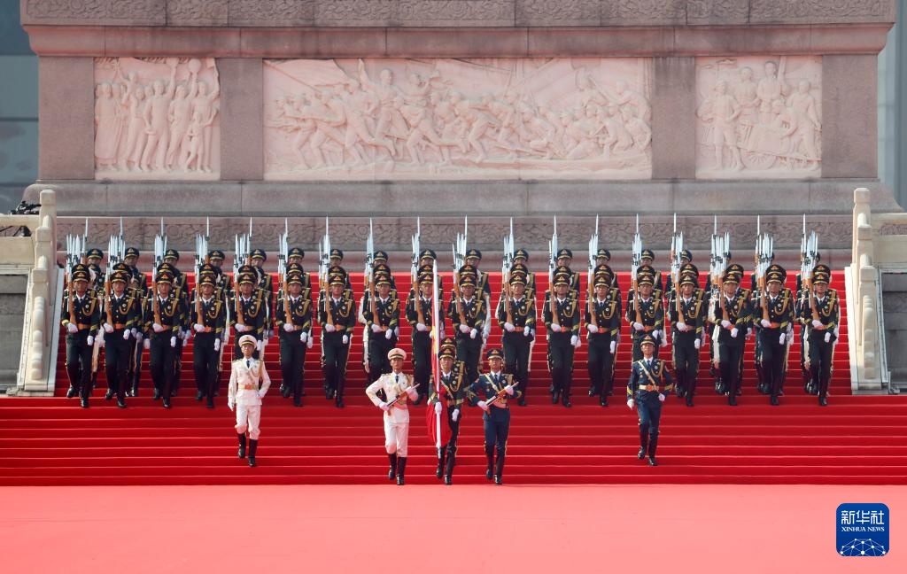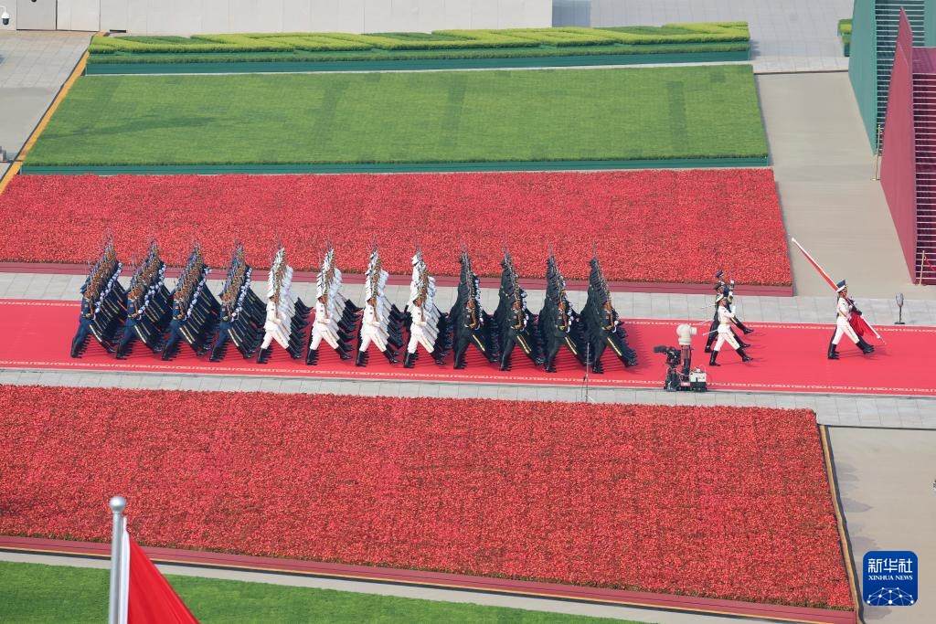 9月3日,紀(jì)念中國(guó)人民抗日戰(zhàn)爭(zhēng)暨世界反法西斯戰(zhàn)爭(zhēng)勝利80周年大會(huì)在北京隆重舉行。這是國(guó)旗護(hù)衛(wèi)隊(duì)從人民英雄紀(jì)念碑基座出發(fā),走向旗桿基座。